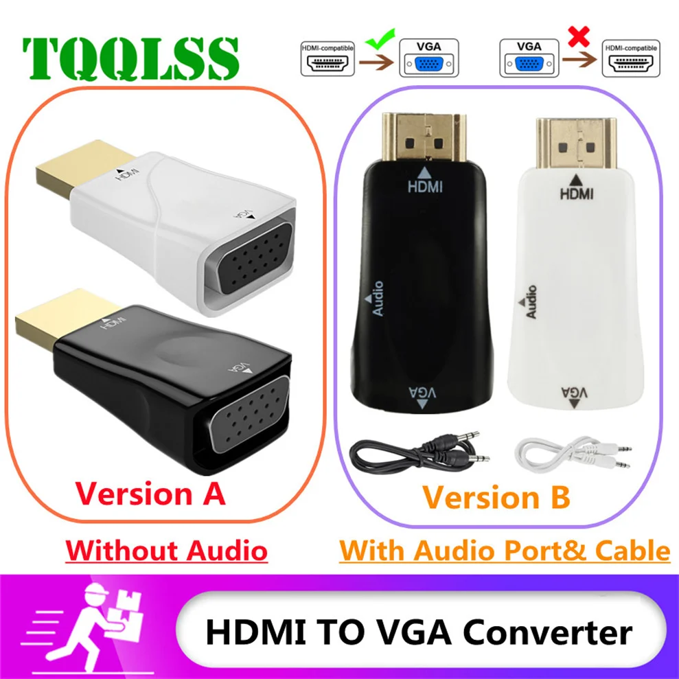 Обратите внимание:Тип A: Этот продукт является только конвертером HDMI-VGA, не поддерживает VGA-HDMI; Не поддерживает функцию аудио; Не имеет аудиокабеля.Тип B:Этот продукт представляет собой конвертер HDMI-VGA с аудиокабелем, не поддерживает VGA-HDMI;