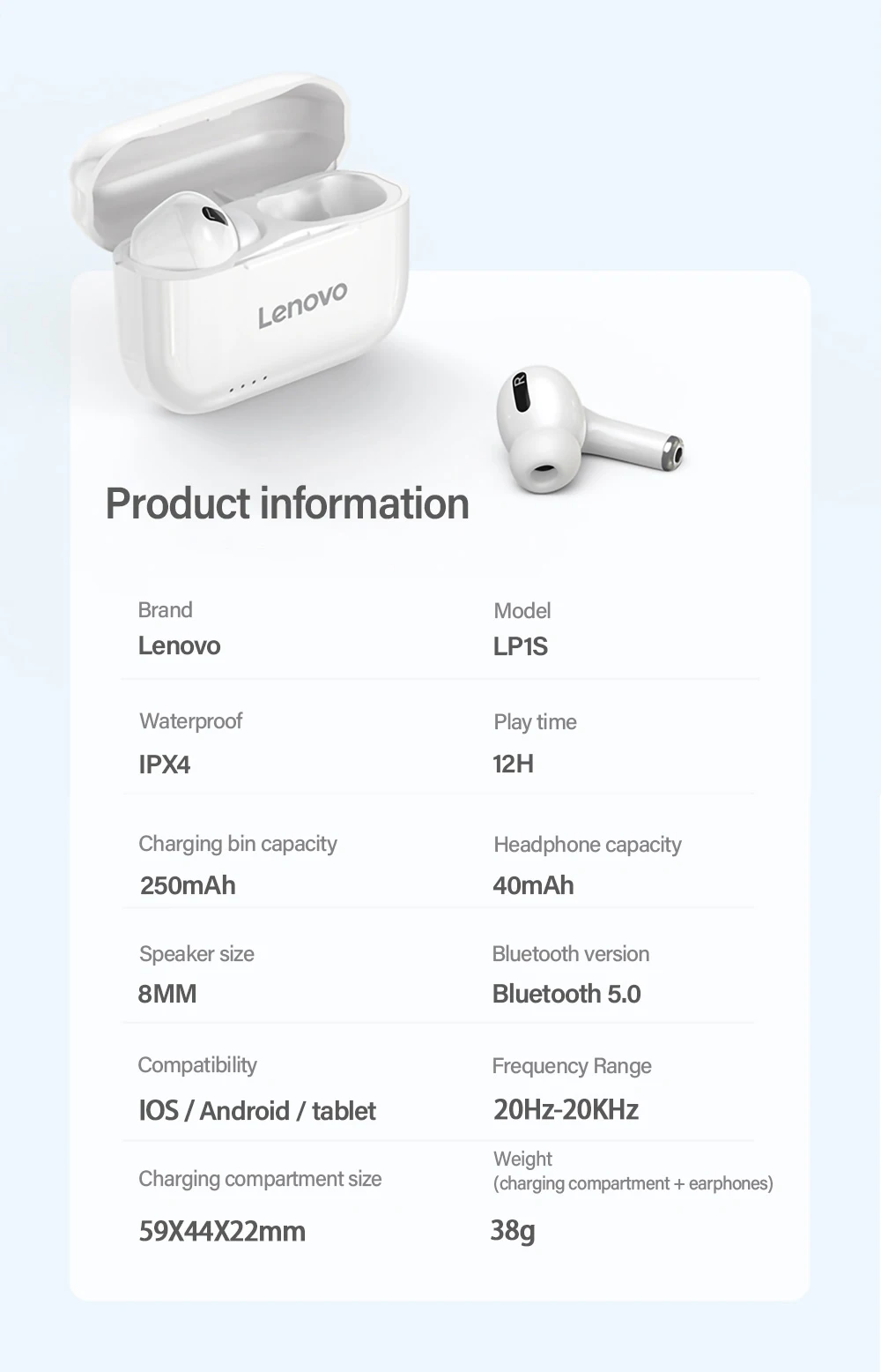 Беспроводные наушники Lenovo LP1S TWS Bluetooth с двойным стерео сенсорным управлением HiFi Музыкальная гарнитура Новинка سععfone fone de ouvido Bass Наушники