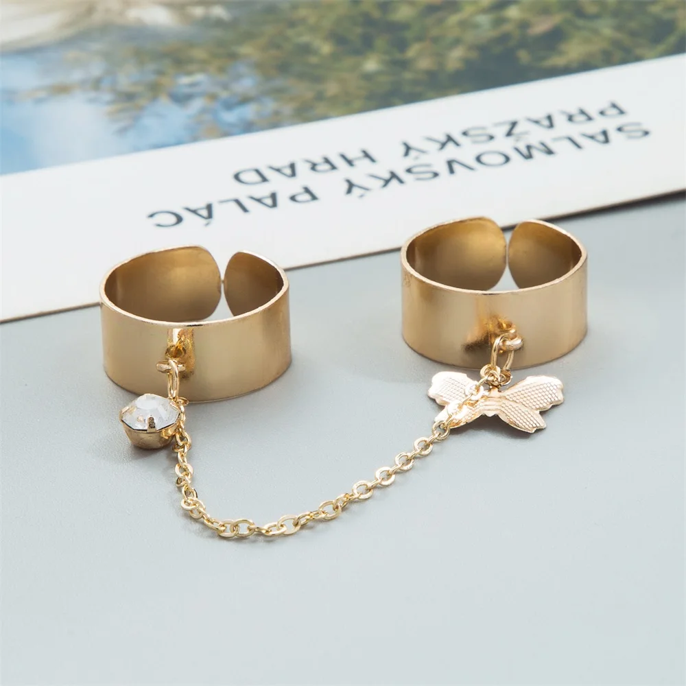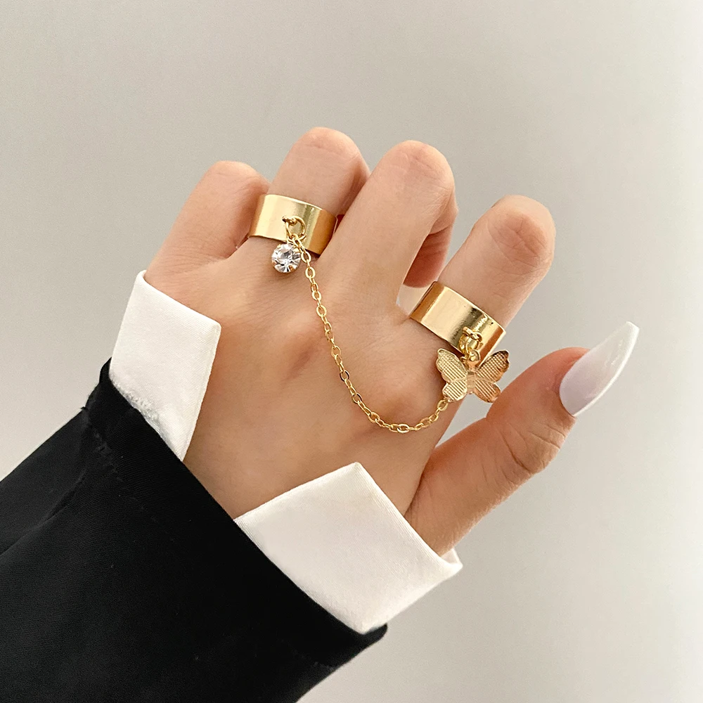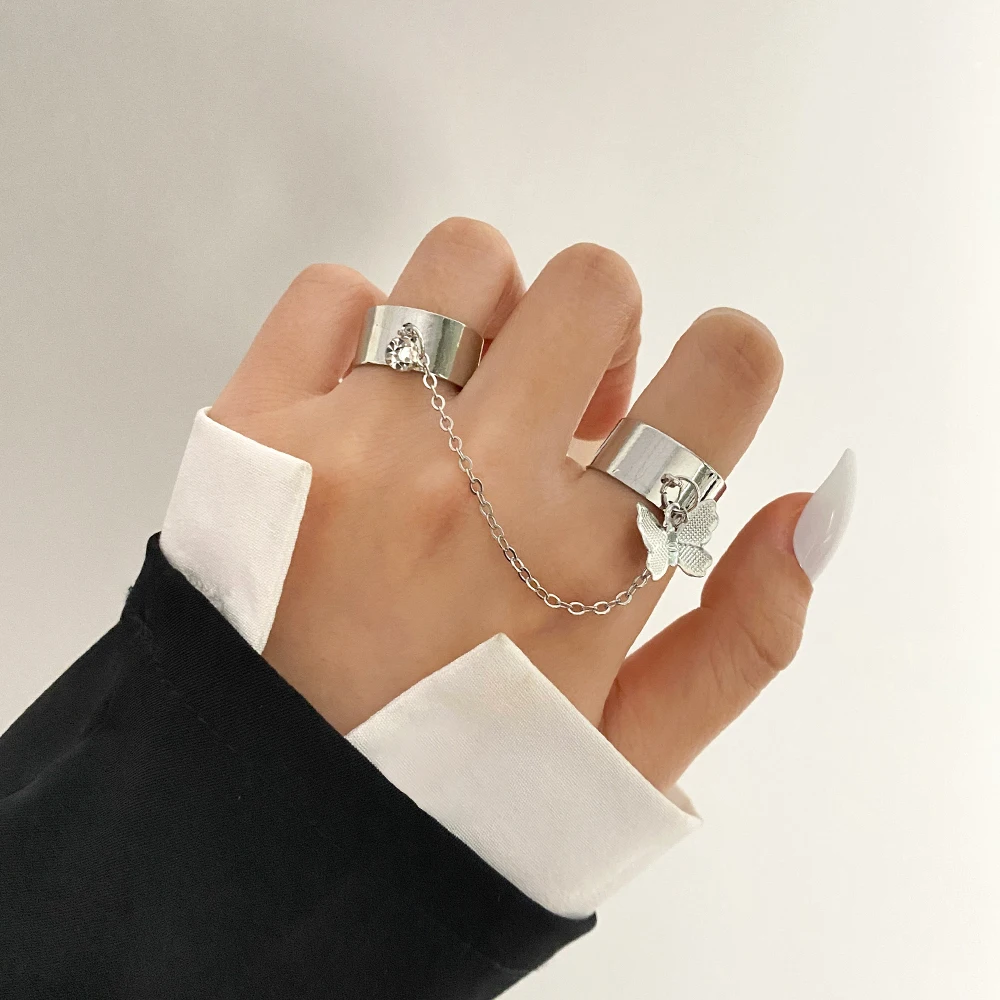 VKME Серебряный Цвет Панк Прохладный Хип-Хоп Цепи Бабочки Кольца для Женщин Регулируемый Открытый Палец Кольцо Набор Мужские Кольца Партии Подарочные Ювелирные Изделия