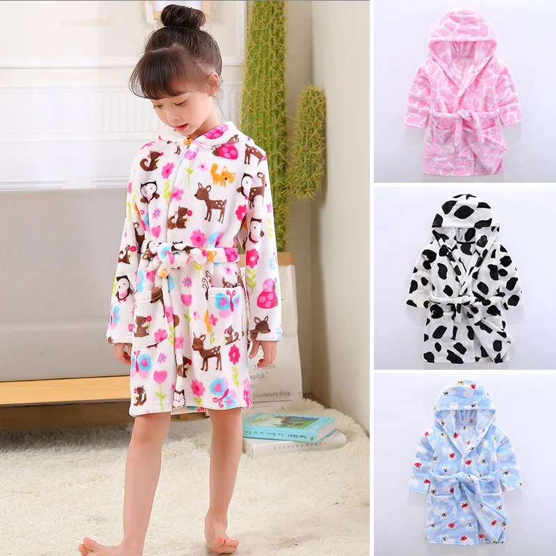 Детские фланелевые банные халаты, ночная рубашка, модная детская пи...