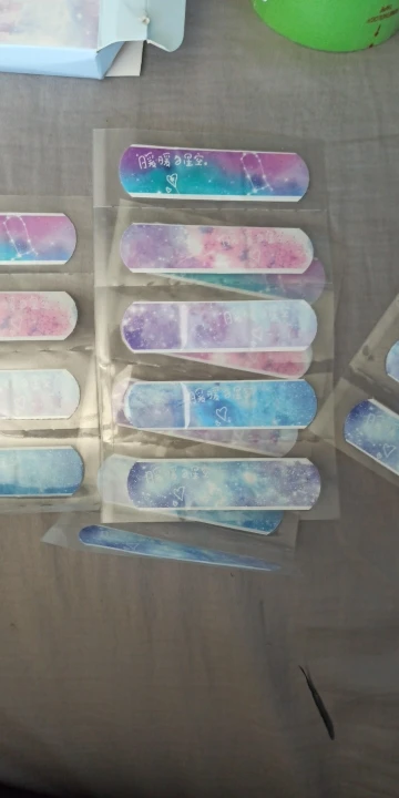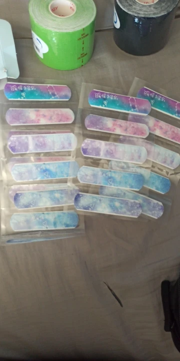Упаковка помята и порвана, но сам товар не пострадал. Каждый пластырь заламинирован, пока откроешь, кровью можно истечь. Но зато не повредится, т. к. основа очень тонкая, похоже - бумажная.