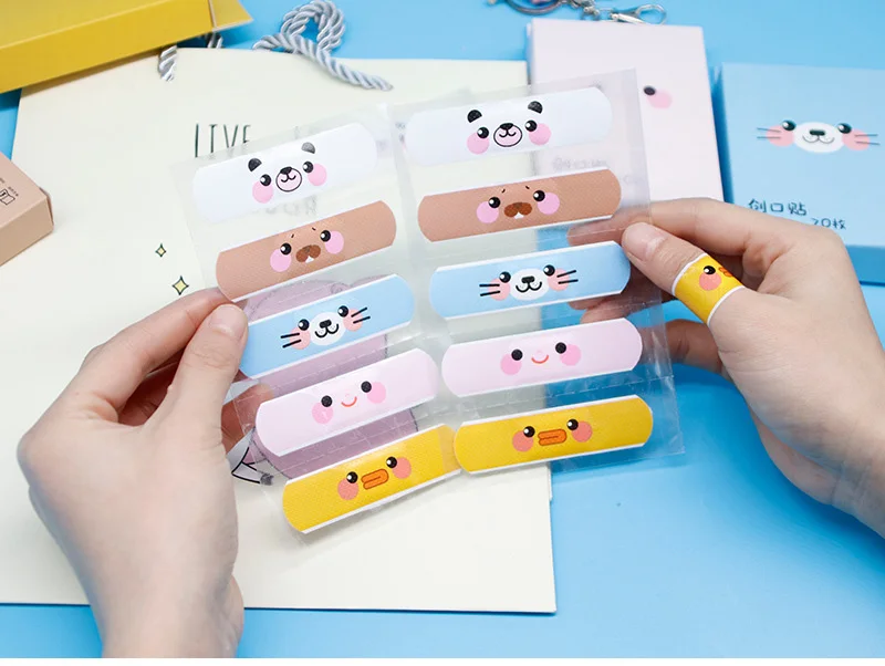 20 шт. Симпатичные Мультяшные Простые Изогнутые пластыри с рисунком, повязки для ран, клейкие пластыри, повязки, повязки для детей