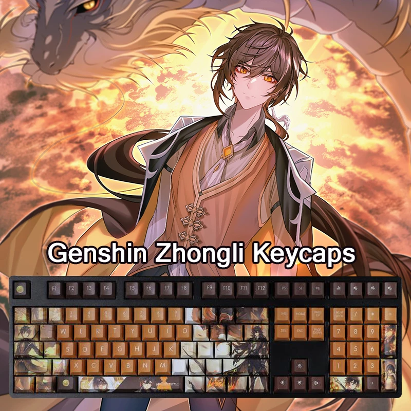 108 клавиши Genshin Impact Zhongli клавиши Pbt сублимационные аниме клавиши Механическая игровая клавиатура