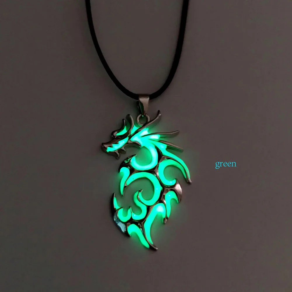 Светящееся ожерелье в виде дракона, светящаяся Ночная флуоресцентная античная серебряная подвеска для мужчин и женщин, для вечерние