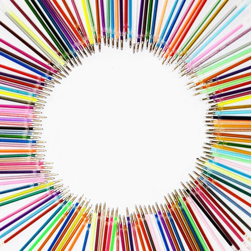 -100 цветов Заправка для гелевой ручки: Блестящий металлический волшебный пастельный неоновый классический цвет. Нет дубликатов, идеально подходит для чертежей, эскизов, скрапбукинга и приглашений