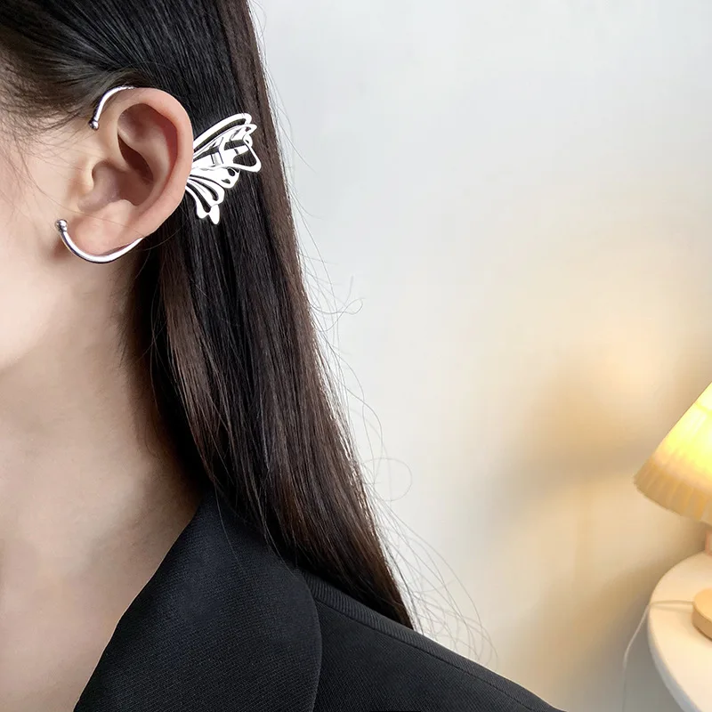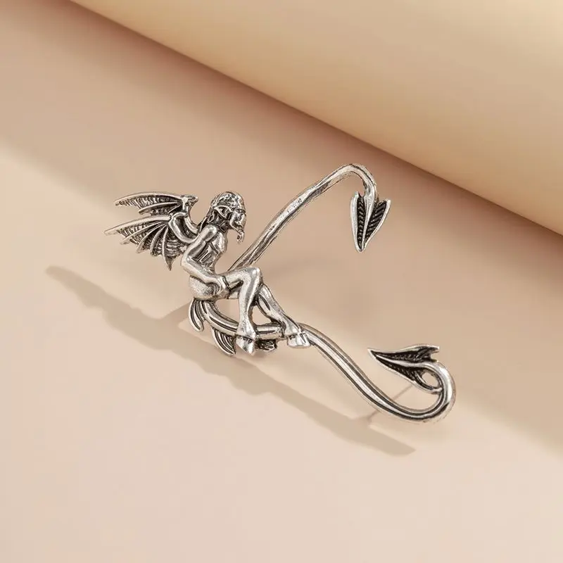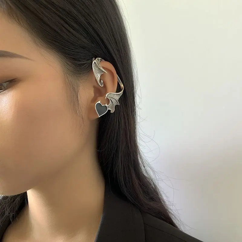 Серьги-каффы в стиле панк, темные эльфы, готические клипсы в виде крыльев, серьги без пирсинга, серьги в виде демона, ангела, сердца, новинка 2022, серьги в виде змеи