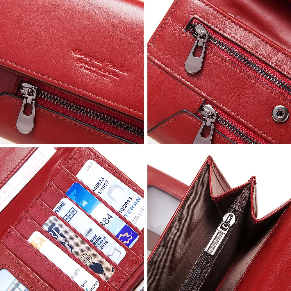 Модный женский кошелек из натуральной кожи с блокировкой RFID, трехскладной держатель для кредитных карт, роскошные длинные женские клатчи с карманом для телефона