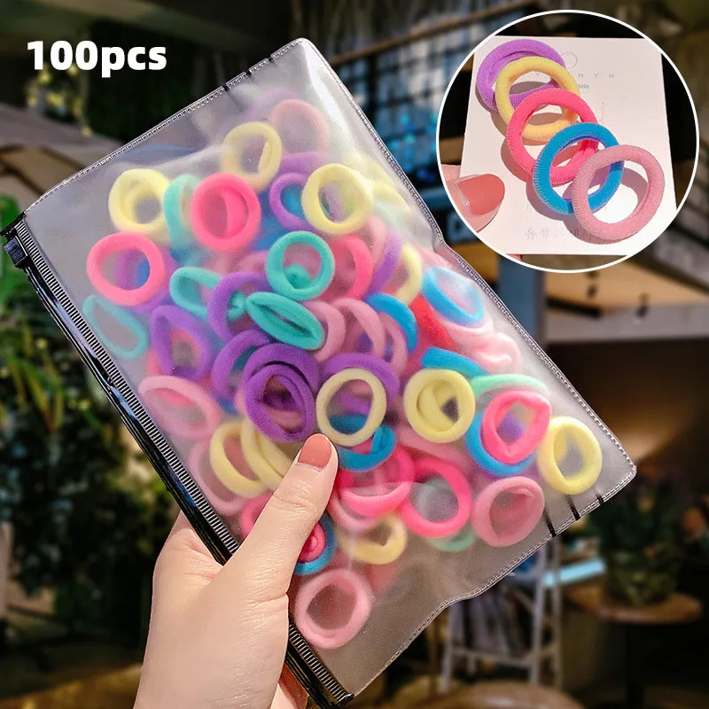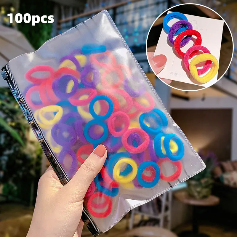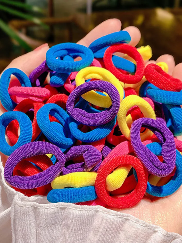 100 шт.лот Симпатичные эластичные резинки для волос, женские резинки для волос, резинки для волос для девочек, резинки для волос, повязки на голову, аксессуары для волос для детей
