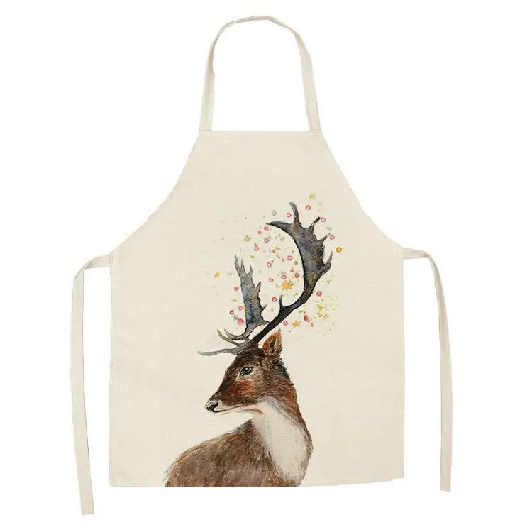 Фартук для женщин и детей, кухонный аксессуар с рисунком оленя, лисы, кота, для дома, выпечки, уборки