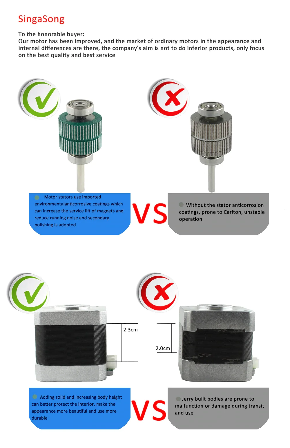 Поверхность ротора двигателя покрыта импортной эпоксидной смолой, которая уплотняет ротор в целом и вылечивается при высокой температуре. После того, как ротор обрабатывается истиранием, остатки обработки, такие как железные шпильки, не легко появляются в зубных канавках. Двигатель стабильный даже после длительного использования. Нет риска помех.