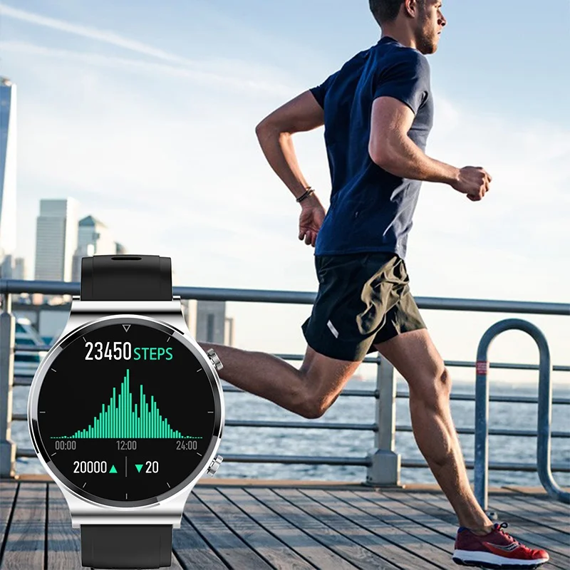 Пункты продажи:1,3 дюймов круглый экранВызов по BluetoothНизкое энергопотреблениеПриложение DafitПараметры продукта1. Экран размер 1,3 дюймов полный сенсорный экран Экран2. Разрешение 240*2403. Экран: IPS HD4. Экран Размер: 1,3 дюймов5. Чип: RTK8762C6. Датчик сердечного ритма: HRS33007. Память: 64 Мб8. Bluetooth: 5,09. Емкость аккумулятора: 230 мАч10. Время зарядки: около 2-3 ч11. Срок службы батареи: 8-15 дней12. Время работы в режиме ожидания: 30 дней13. Водонепроницаемость: IP6814. Приложение: Da Fit15. Системные требования: Android 4,4 и выше/IOS 8,0 и выше16. Метод зарядки: порт USB для прямой зарядки17. Водонепроницаемость: IP68Функции1. Следите за своим здоровьем:Пульс/кровяное давление/мониторинг кислорода в крови, трекер сна, напоминание о малоподвижности.2. Хороший помощник для тренировки:Шагомер, пройденное расстояние/сожженные калории, спортивные режимы.3. Хороший помощник для повседневной жизни:Осуществление телефонных звонков по Bluetooth, синхронизация уведомлений (входящие звонки, сообщения, социальные сети и так далее), будильник, секундомер, пульт дистанционного управления камерой, пользовательские лица, рынок часов, погода и т. Д.ЯзыкиЯзыки пользовательского интерфейса: китайский (упрощенный/традиционный), английский, арабский, французский, немецкий, испанский, японский, корейский, португальский, русский.Языки приложения: китайский (упрощенный/традиционный), английский, арабский, французский, немецкий, испанский, японский, корейский, португальский, русский.Список посылкаУмные часы * 1Зарядный кабель * 1Руководство пользователя * 1