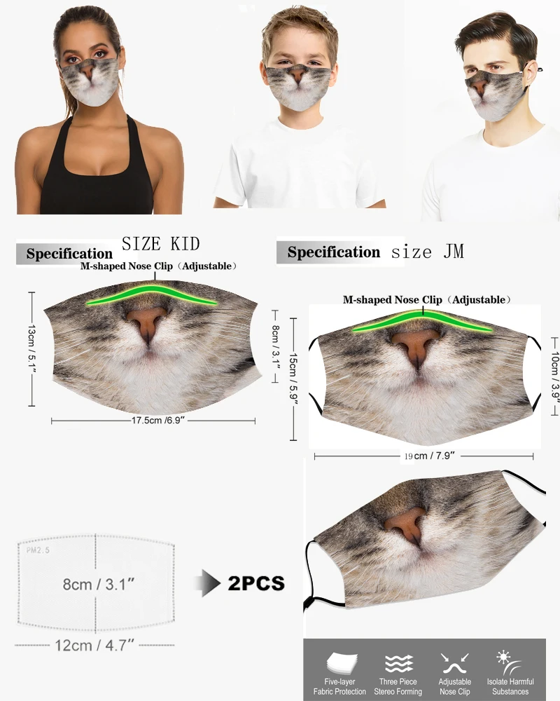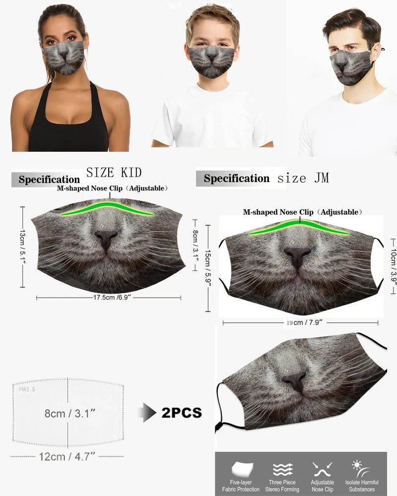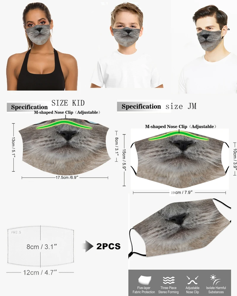 Маска для взрослых с изображением кошки модная маска для лица детская Рождественская маска для ролевых игр моющаяся многоразовая маска для лица