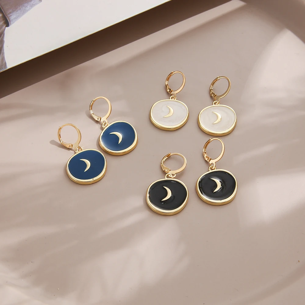 Винтажные очаровательные серьги-подвески из цинкового сплава в форме Луны и звезды для женщин, модные эмалированные круглые Висячие серьги, ювелирные изделия, подарок на день матери