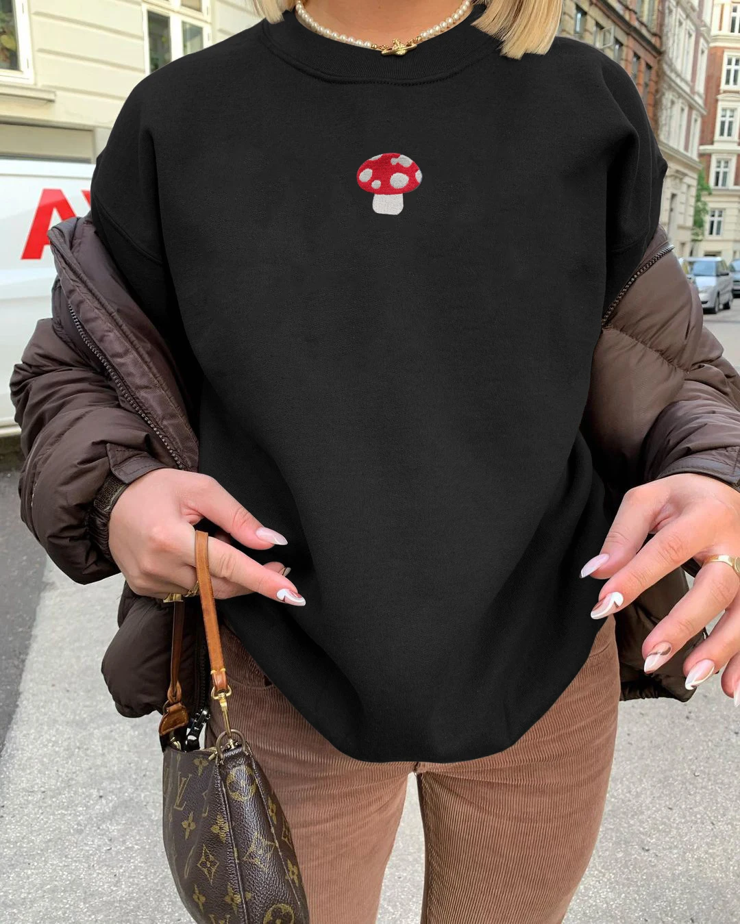 Женский свитшот с длинным рукавом, с вышивкой в виде грибов