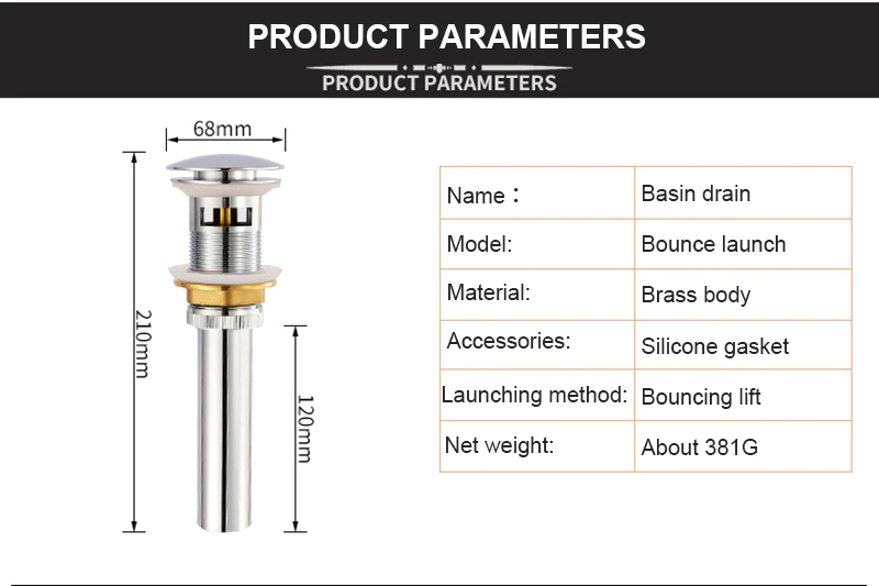 Раковина из латуни с переливным отверстием, отскок, удалитель воды, антиблокировка и герметичность, Быстрая фильтрация