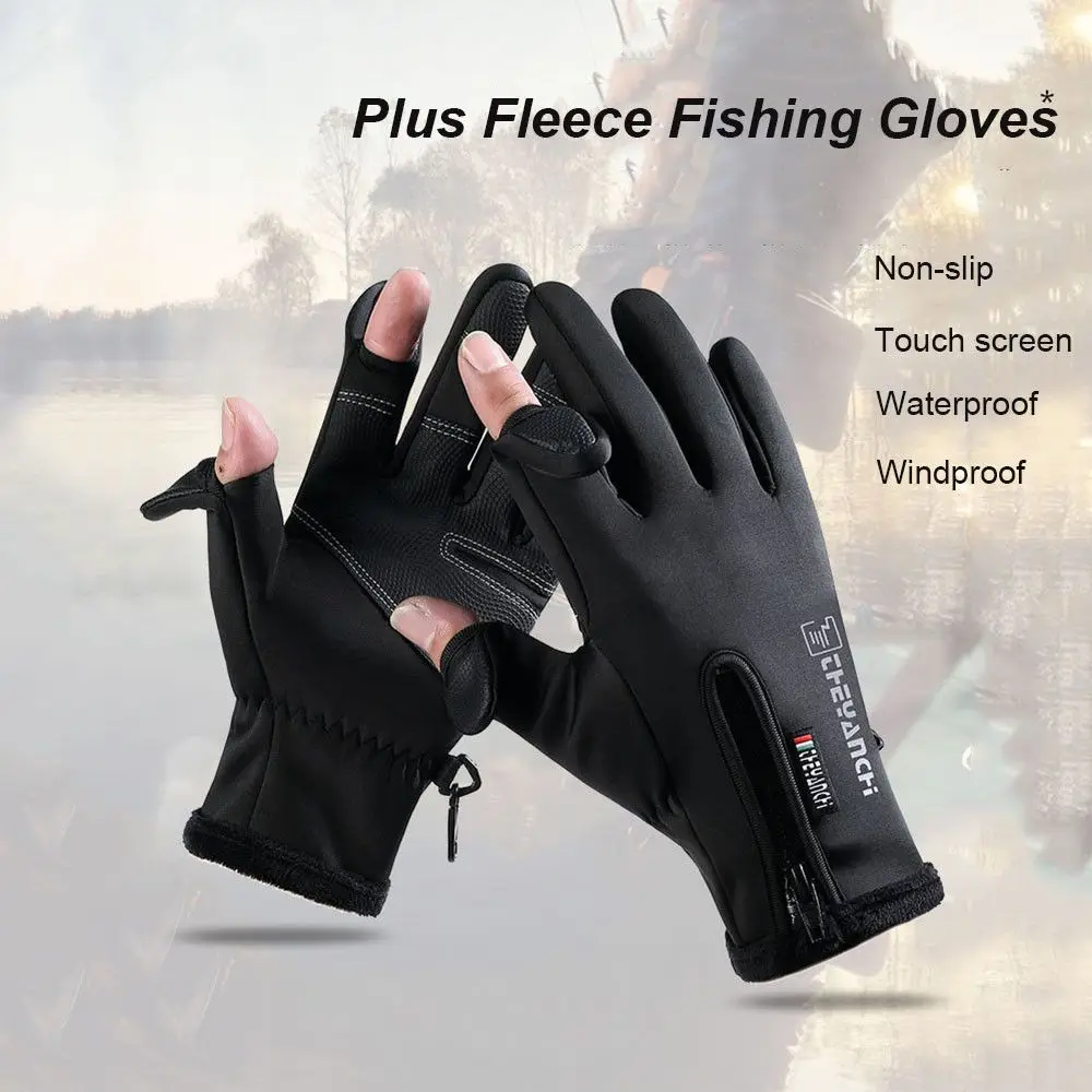 Утолщенные водонепроницаемые ветрозащитные перчатки для верховой езды с сенсорным экраном, рыболовные перчатки с двумя пальцами и теплой защитой