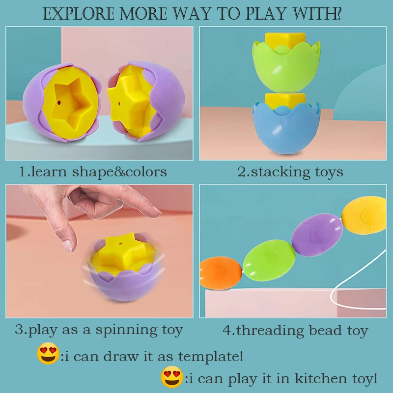 Пазл детский в форме яйца, веселая цветная Геометрическая фигурка для раннего обучения, игрушки Монтессори для малышей, детская игрушка