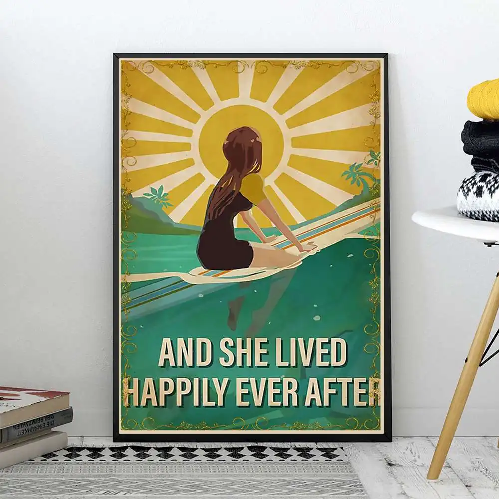 Постер с изображением на тему серфинга And She живет счастливо после серфинга декор для серфинга настенное искусство серфинга подарки для гостиной домашний декор