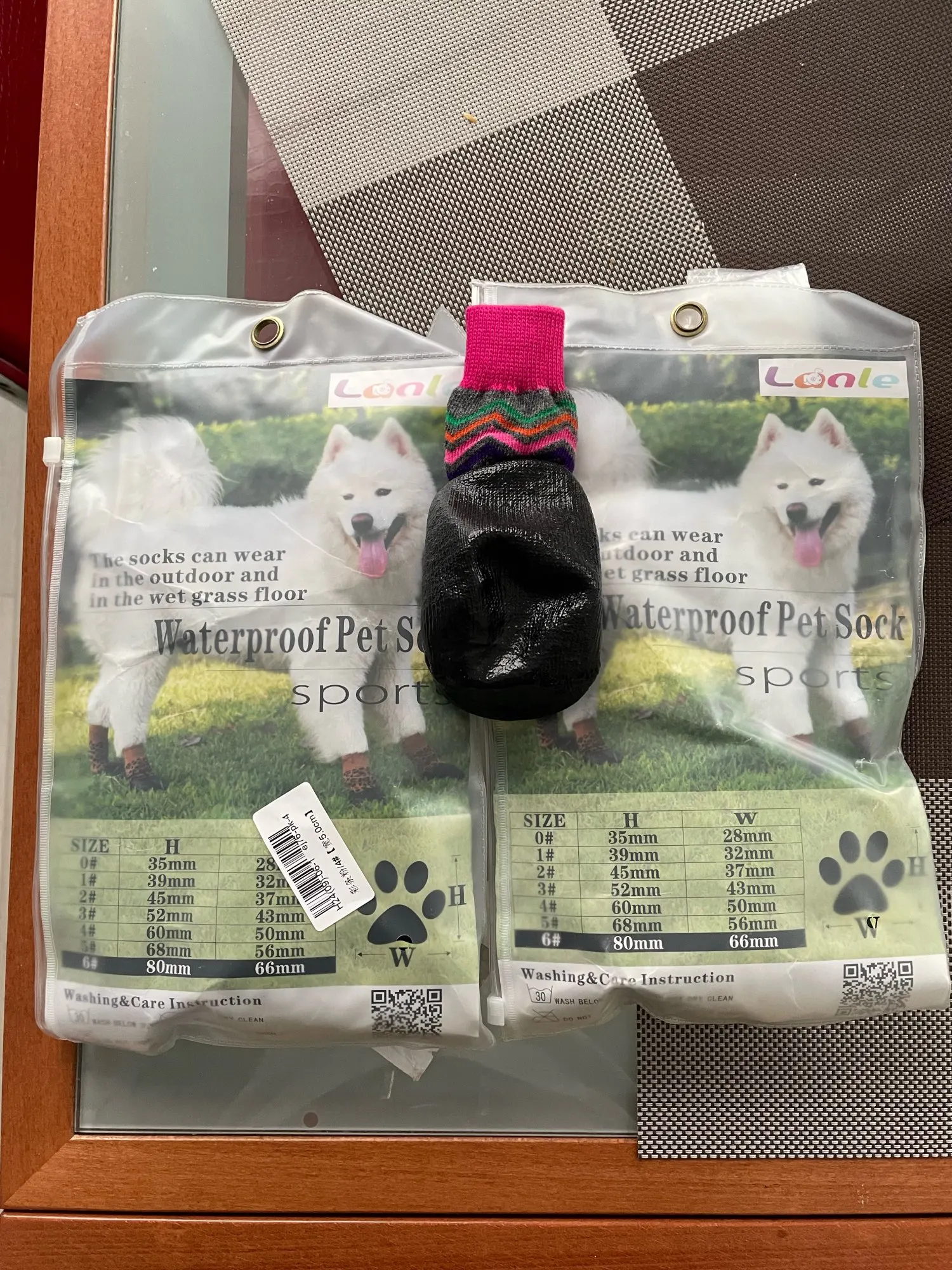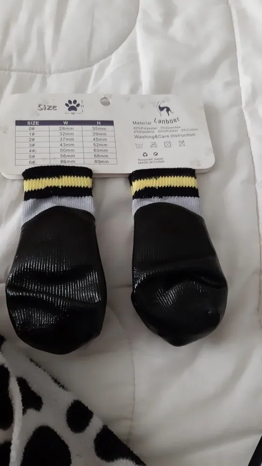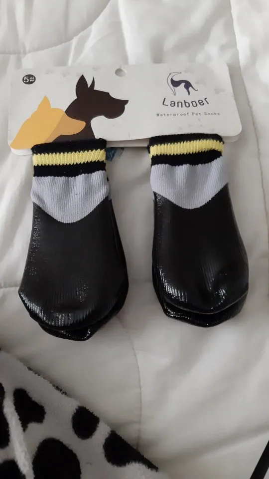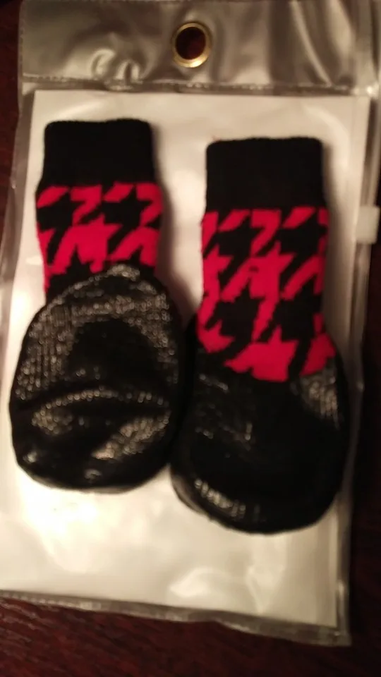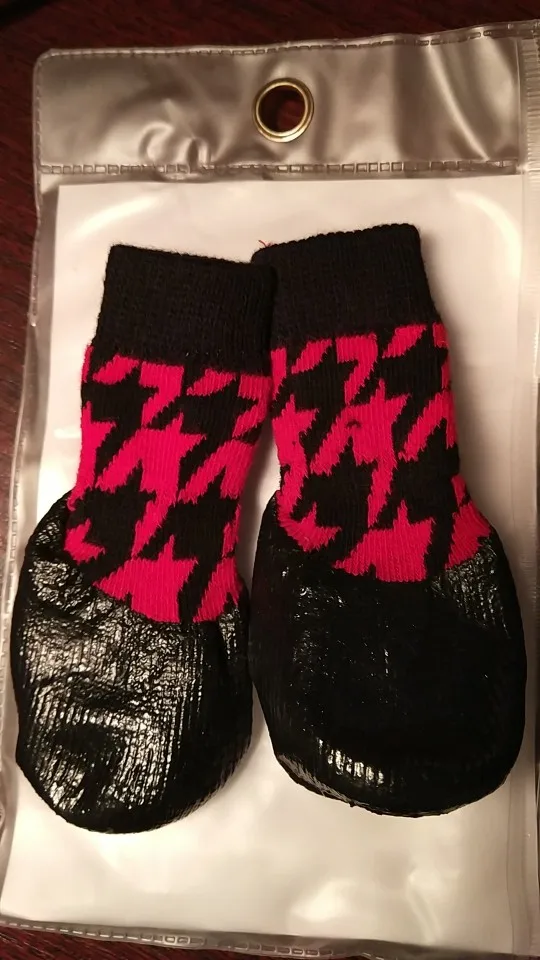 Носочки хорошие, только очень скользят, собака падает. И сползают с лап.