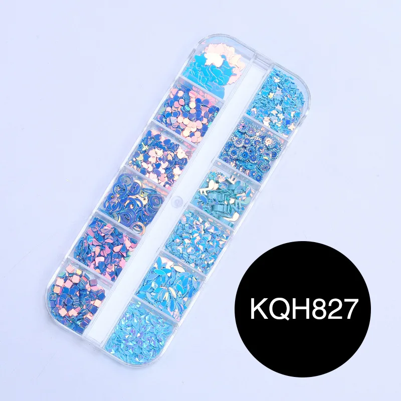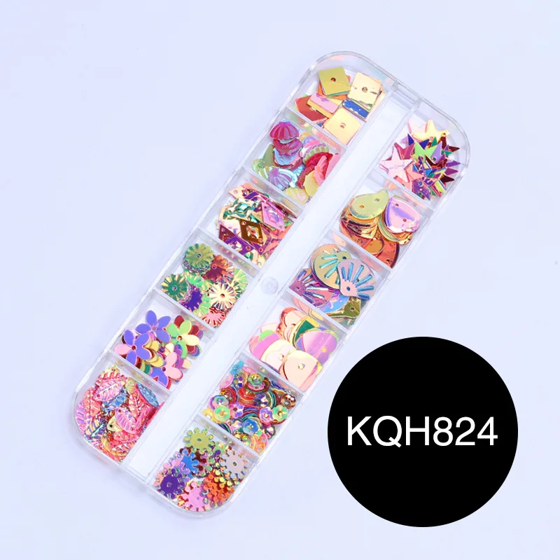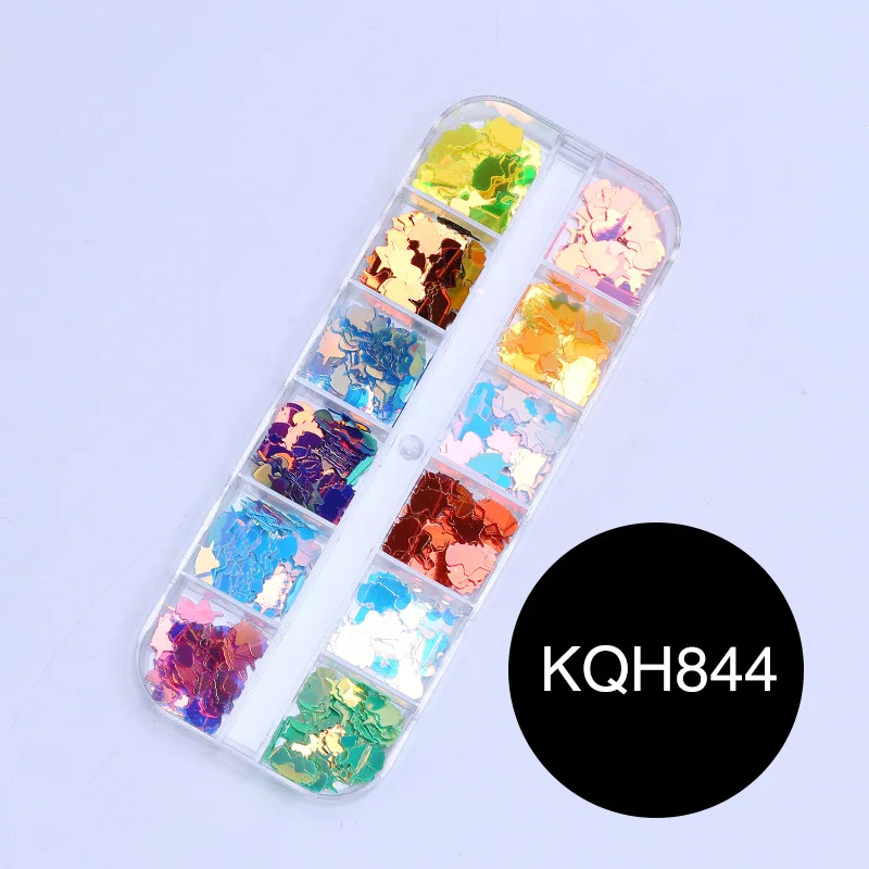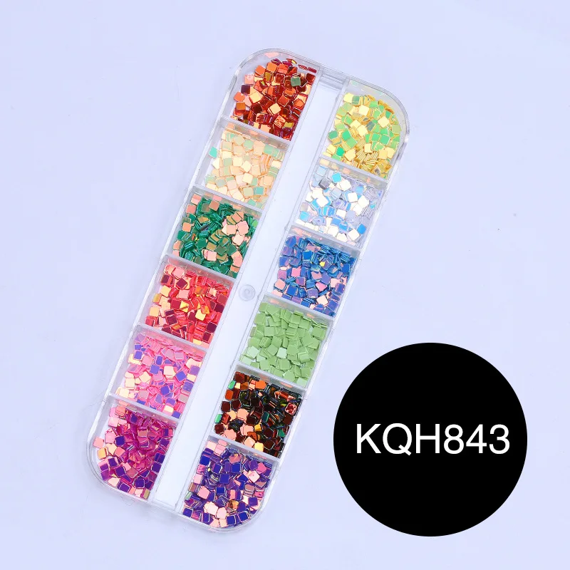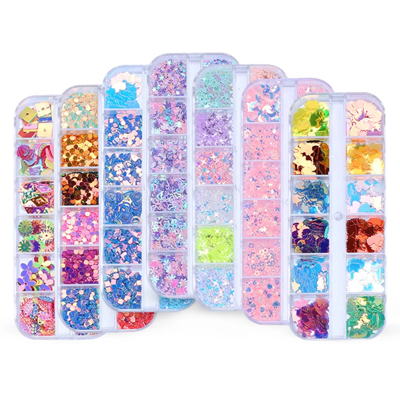 Блестки для ногтей 12 цветов в коробке, блестки для ногтей разных ф...