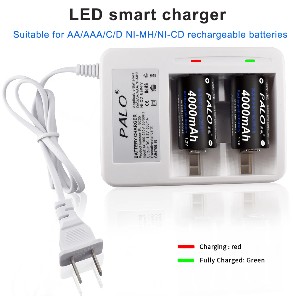 Зарядное устройство Palo для аккумуляторов 1,2 в, AA, AAA, C, D, 9 ...