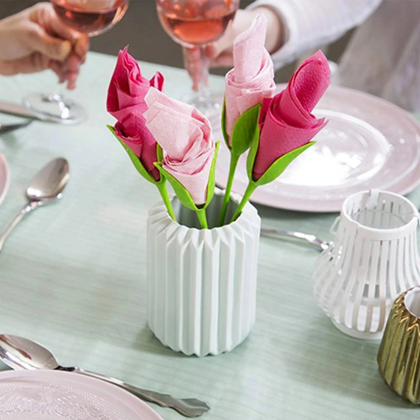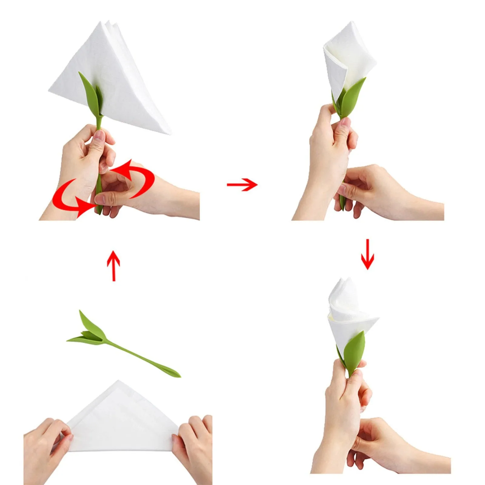 1. Вставьте сложенный в назначенный слот и поверните. Это так просто в сложенном виде, образует красивый и элегантный бутон цветка, который может быть выставлен на стол, тарелку, вазу или тарелку.2. Изготовлен из безопасного материала, экологически чистый.3. Удобно использовать, удобно хранить, безопасно и удобно.4. Идеально подходит в любое время для семьи и друзей, вечеринок и ужинов