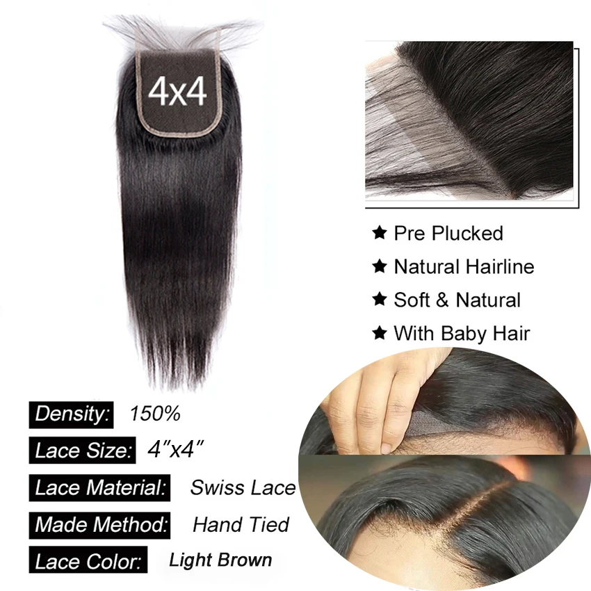 Прямые женские бразильские накладные волосы, 30 дюймов, натуральный цвет, 3 дюйма, 4 шт., для черных женщин