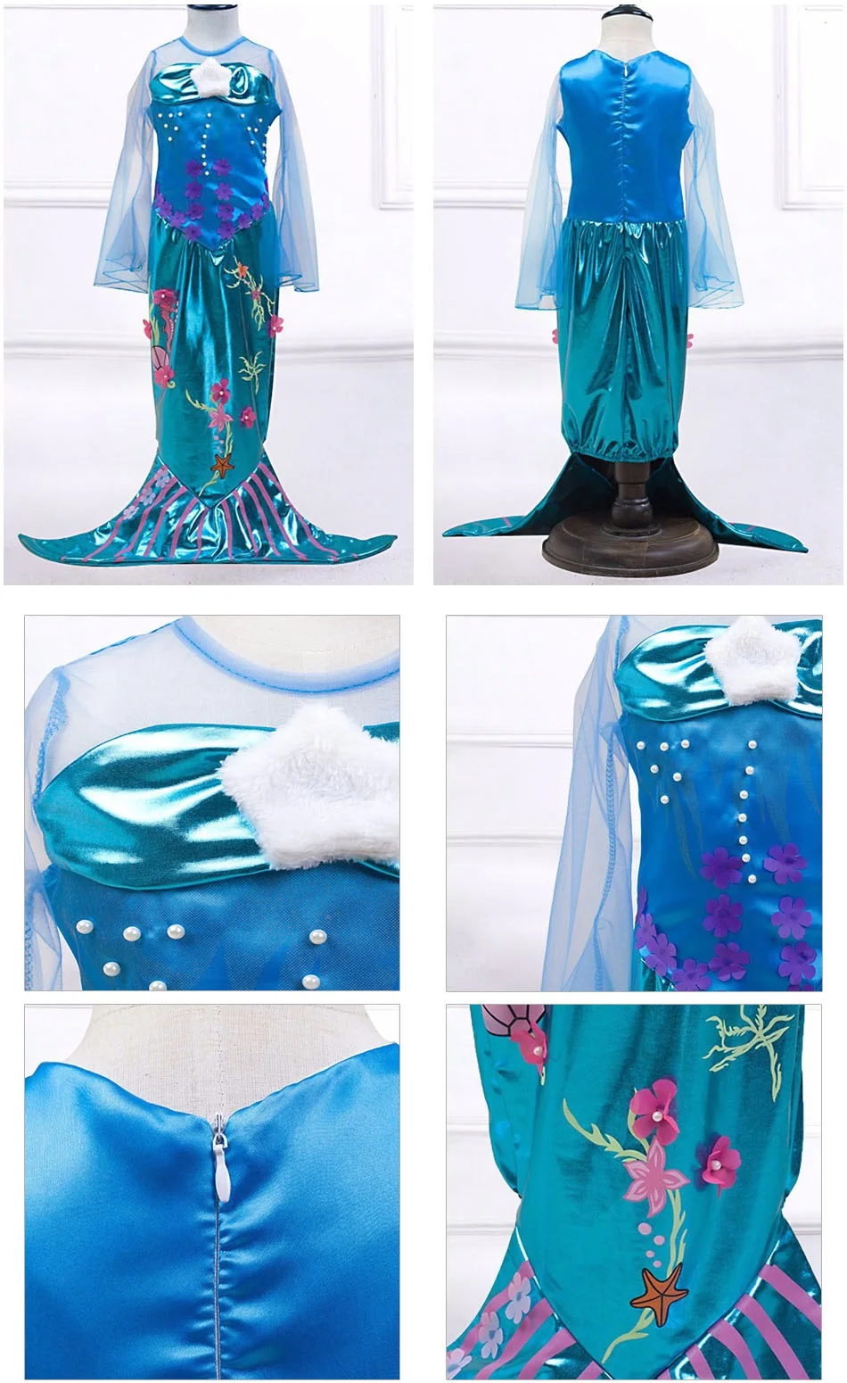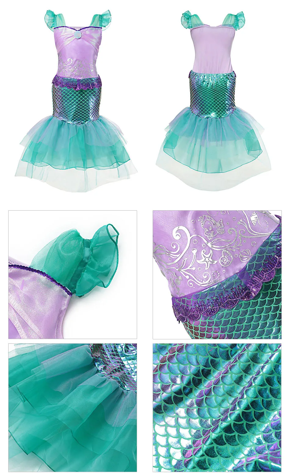 Платье принцессы маленькая русалочка Disney, причудливый костюм для косплея на Хэллоуин и Рождество для девочек, детское платье Ариэль, одежда