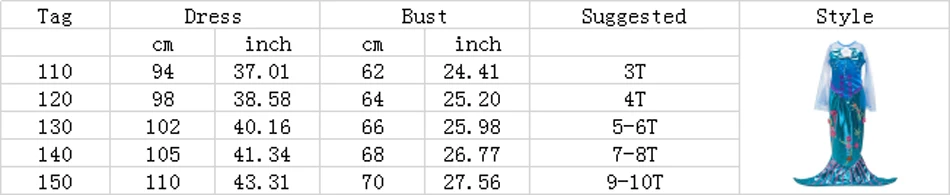 Название: платья принцессы «маленькая Русалочка Диснея» для девочек; Нарядный костюм для костюмированной вечеринки на Хэллоуин; Костюм Ариэль для детей; Одежда для костюмированной вечеринкиМатериал: полиэстер, хлопокРазмер: 100-110-120-130-140-150Тема: платье русалки