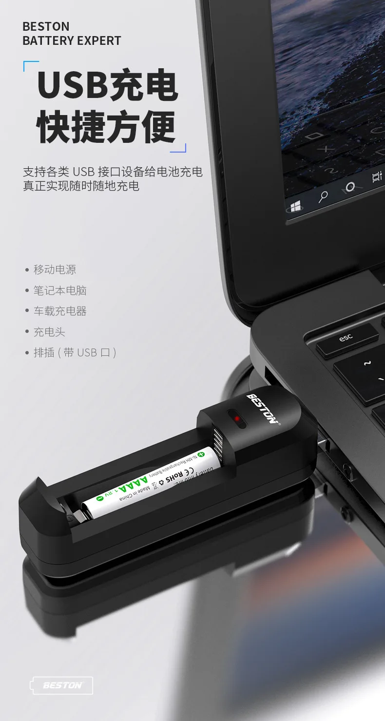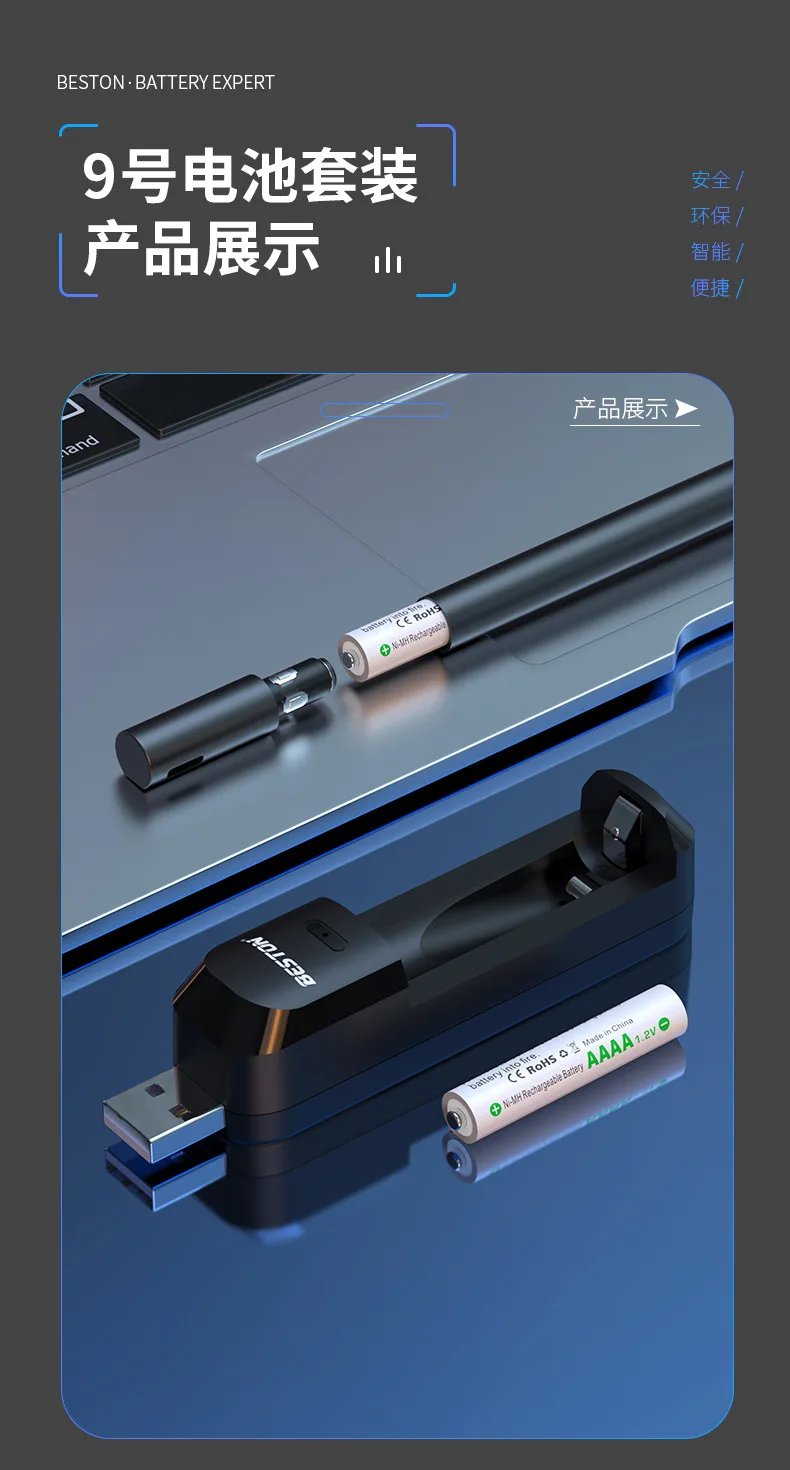 Зарядное устройство USB AAAA и перезаряжаемая батарея AAAA для поверхностных батарей в виде ручки, будильник, фонарики