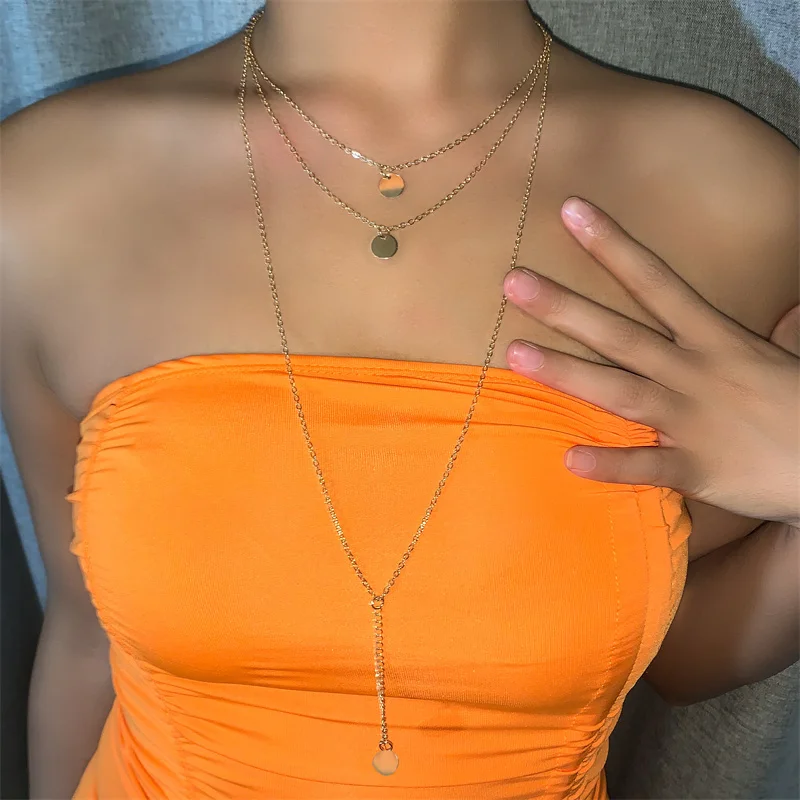 Женское многослойное ожерелье в стиле панк, золотистое винтажное ож...