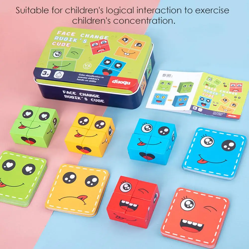 Деревянный изменяющий лицо куб игрушки строительные блоки для мульт...
