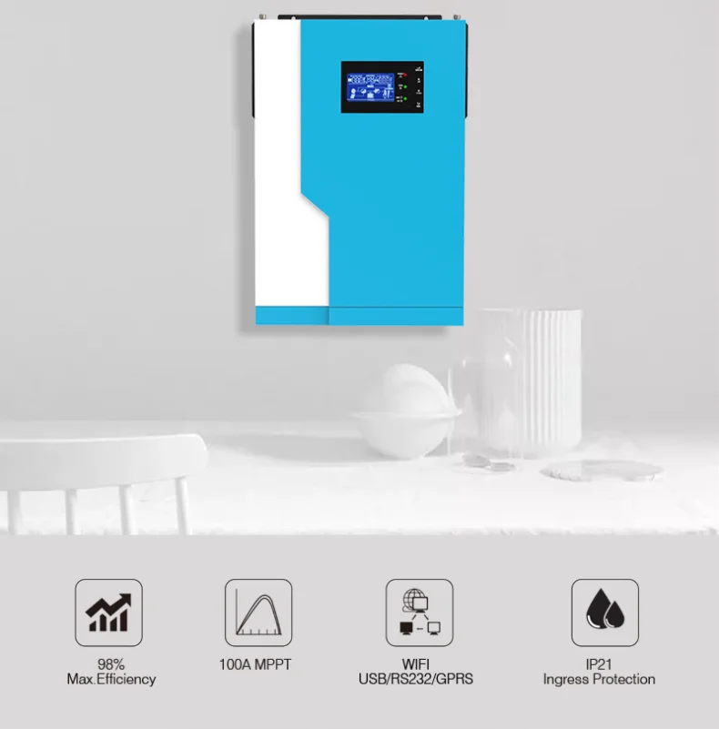 Гибридный солнечный инвертор 3500 Вт MPPT, немодулированный синусоидальный сигнал 24 В 220 А, контроллер заряда солнечной батареи В 50 Гц60 Гц, автономный инвертор с Wi-Fi