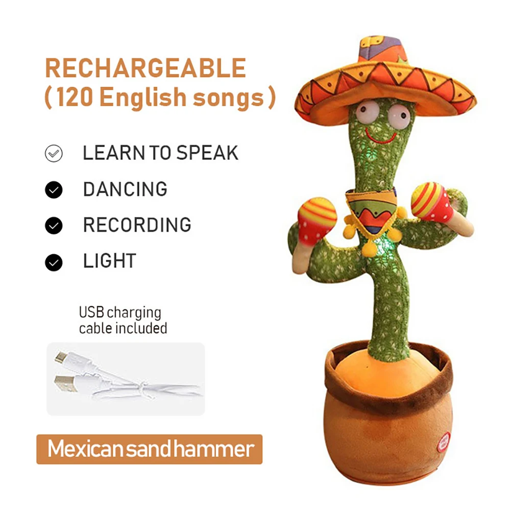 Танцующий кактус, 120 песен, имитация голоса, повторение записи, растение, плюшевая игрушка с несколькими языками для детей, украшение для дома, Прямая поставка