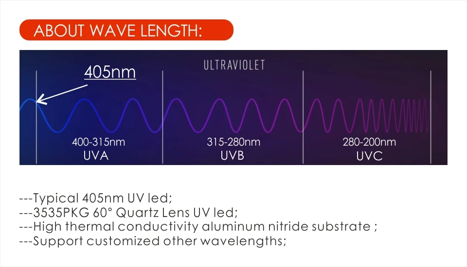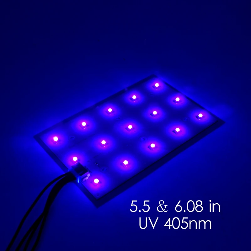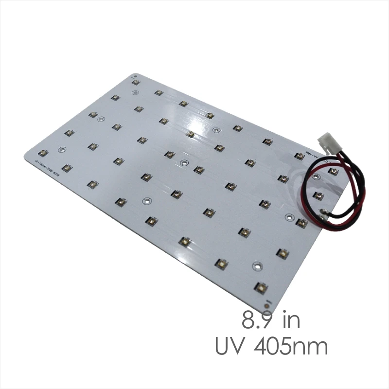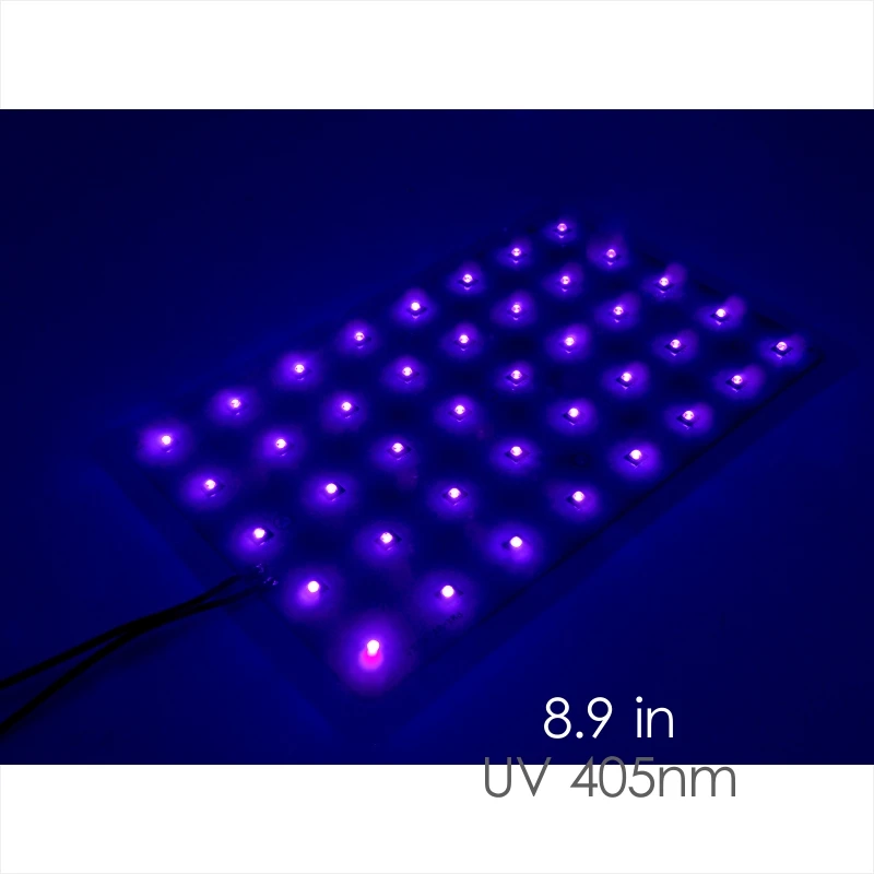 > Матричное расположение ультрафиолетовых светодиодов;> УФ светодиодный светильник для отверждения;> Основные компоненты конструкции параллельного светильник;> Типичный 405нм светодиодный ультрафиолетовый светильник;> 5,5 "-8,9" экран приложения является необязательным, оригинальные характеристики.