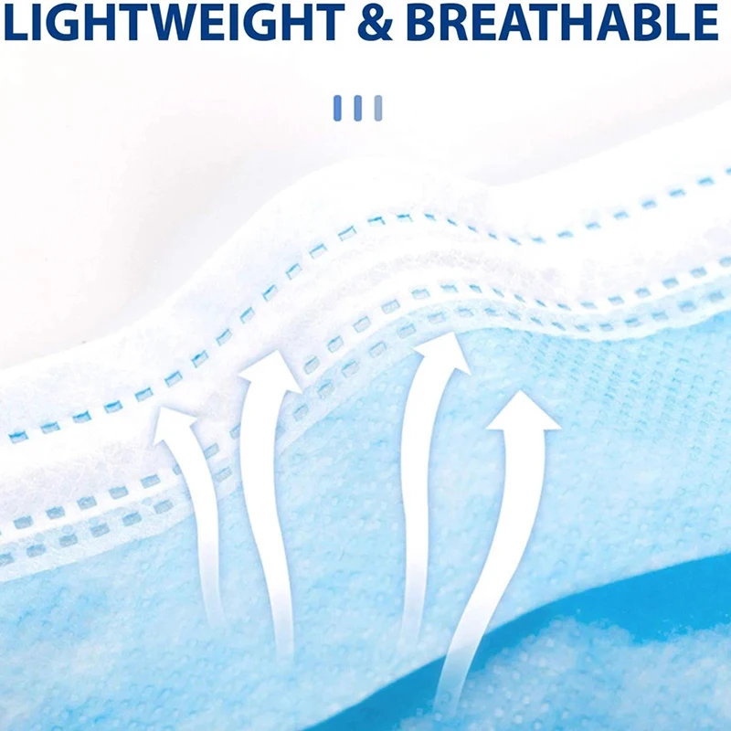Маски одноразовые для взрослых, 3 слоя, дышащие, 50 шт.