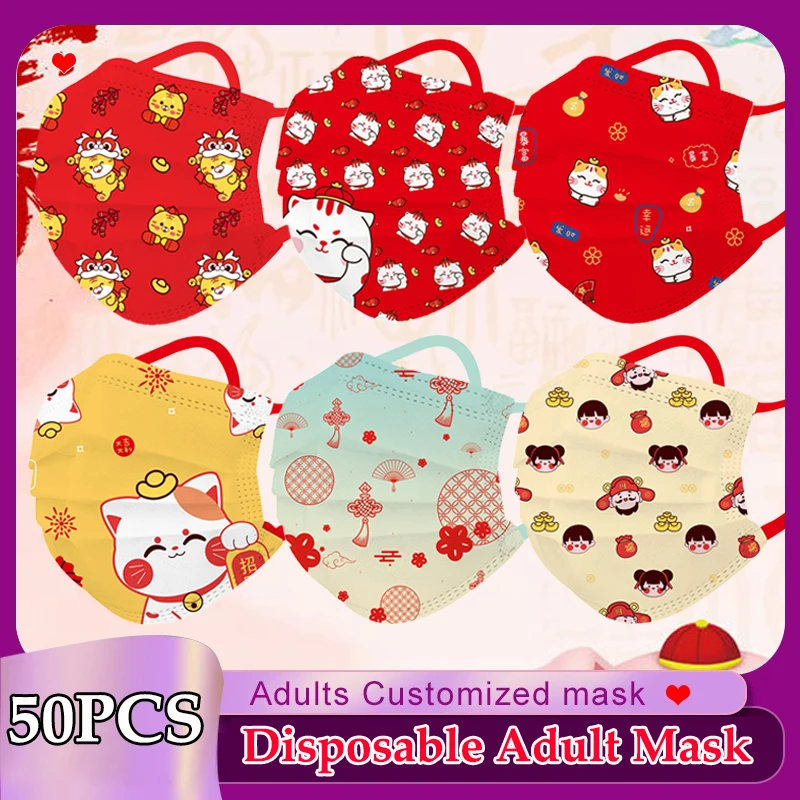 50 шт одноразовые маски для взрослых 3-слойная Нетканая защитные маски 2022 счастливого Нового года и принтом «Тигр», маска для лица для взрослых Характеристики: Материал: Нетканая ткань и фильтрующий слойТип: Ношение ушейРазмеры: взрослый (для 17,5 см * 9,5 см)Применение: Повседневная жизнь, Заводская мастерская, спа, школа, рабочие места и т. Д.