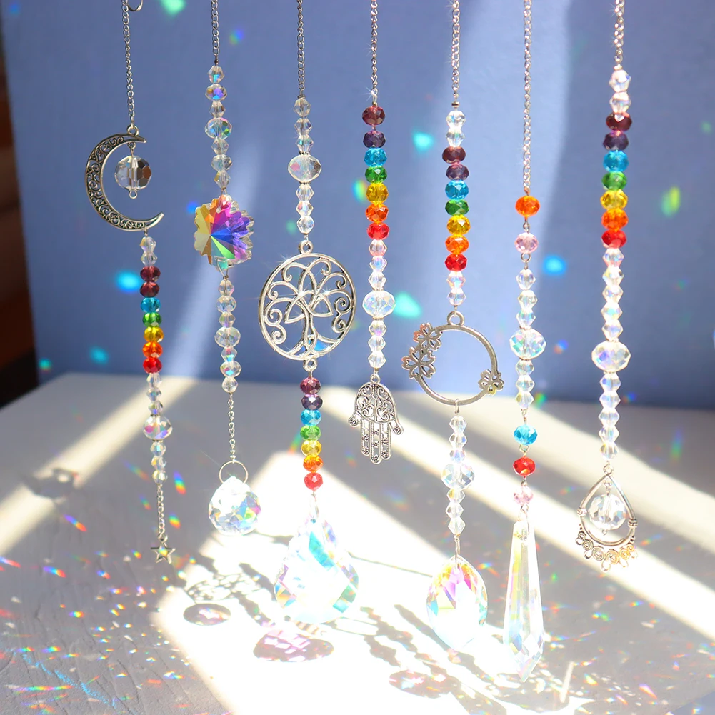 Дерево жизни Кристалл Windchime солнечный светильник Ловец радуги сделать Луну кулон ювелирные изделия окна шторы висячие дома рождественские украшения