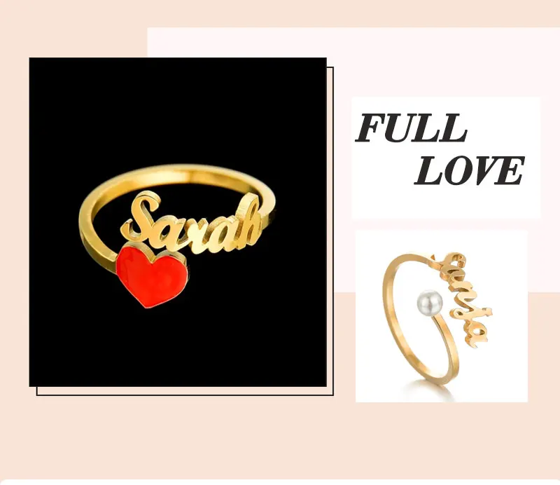 Кольца женские регулируемые из нержавеющей стали, с именем на заказ