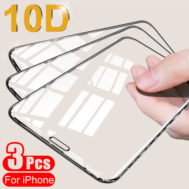Закаленное защитное стекло 10D, стекло с полным покрытием для iPhone 13, 12, 11 Pro, XR, X, XS Max, 7, 6, 6s, 8 Plus, SE, 3 шт.