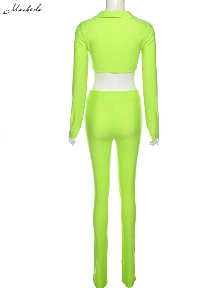 Machedaосенний тонкий и мягкий женский костюм из двух предметов, пикантная футболка с v-образным вырезом и штаны с высокой талией, удобные два предмета