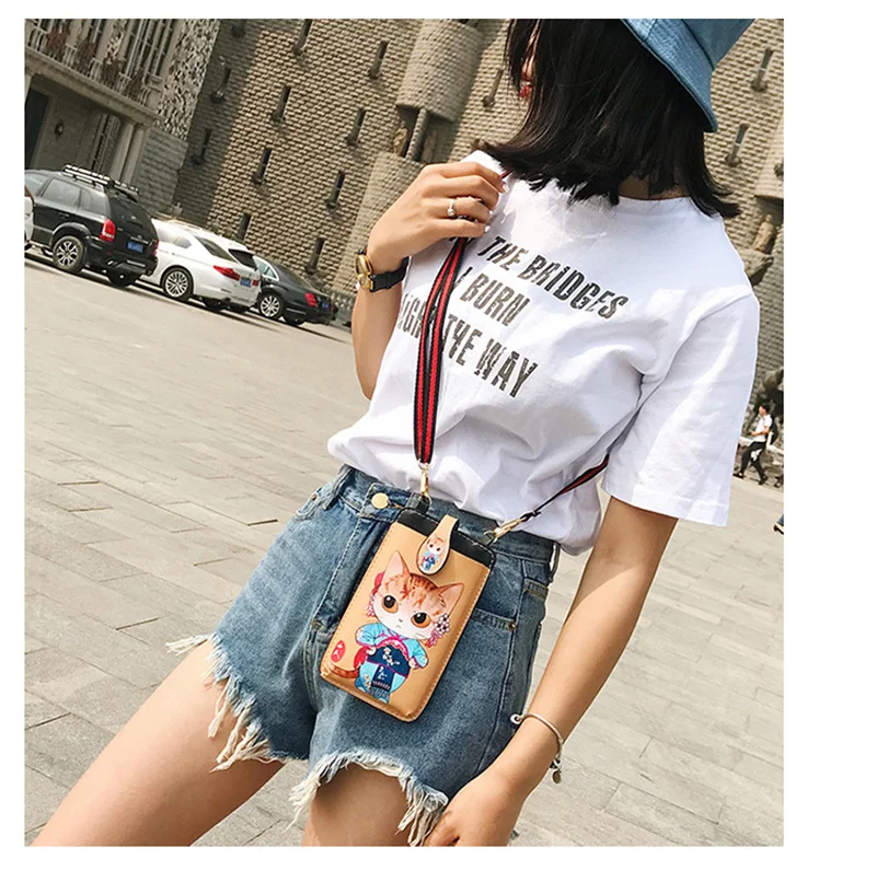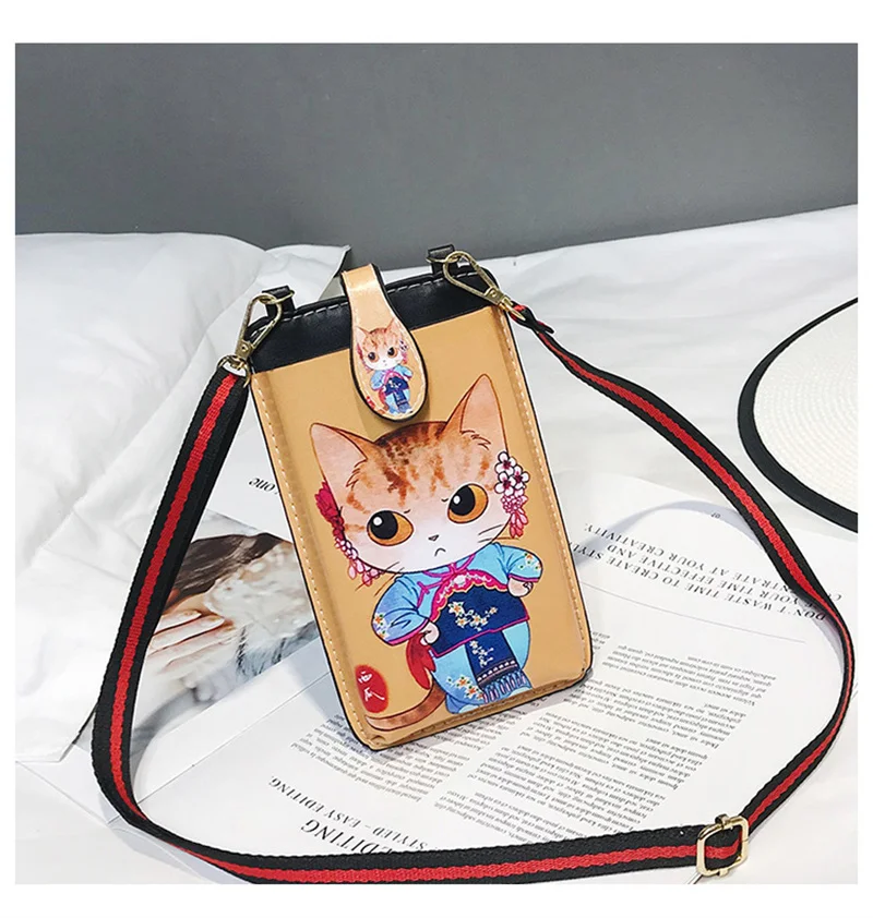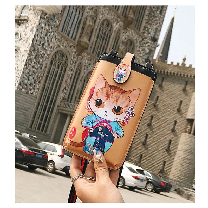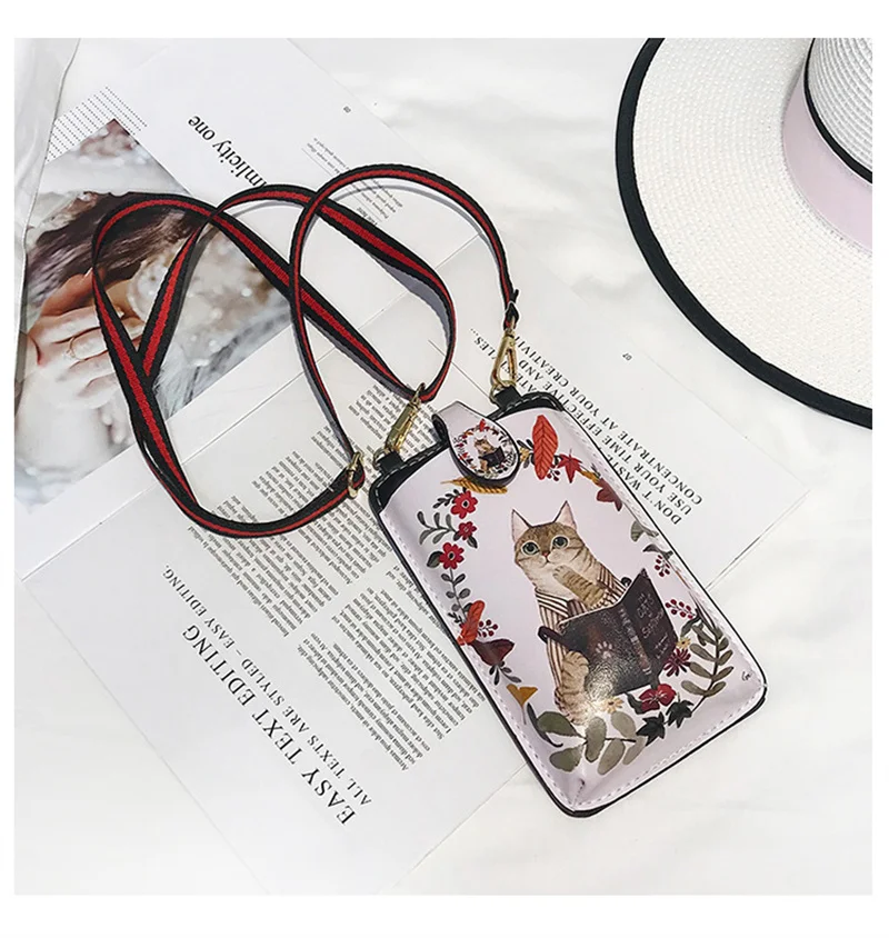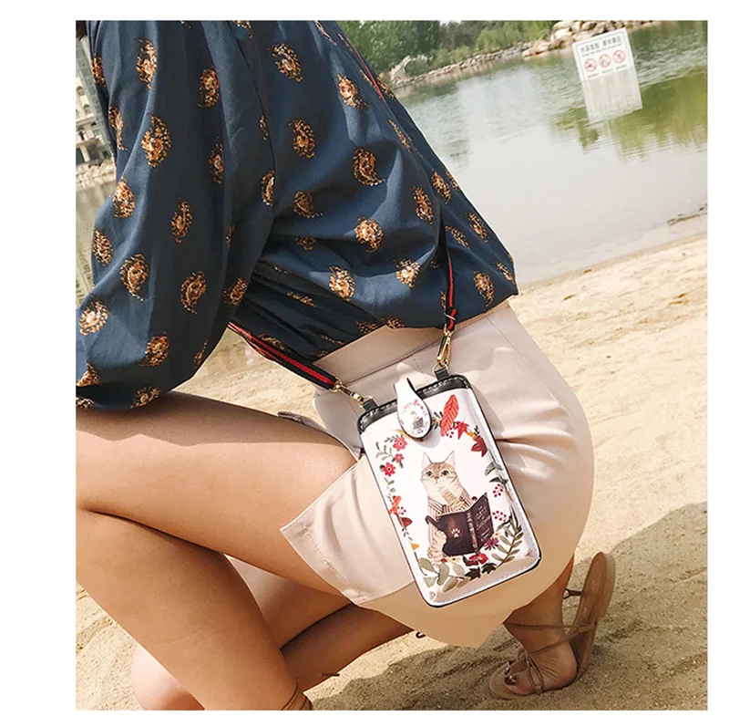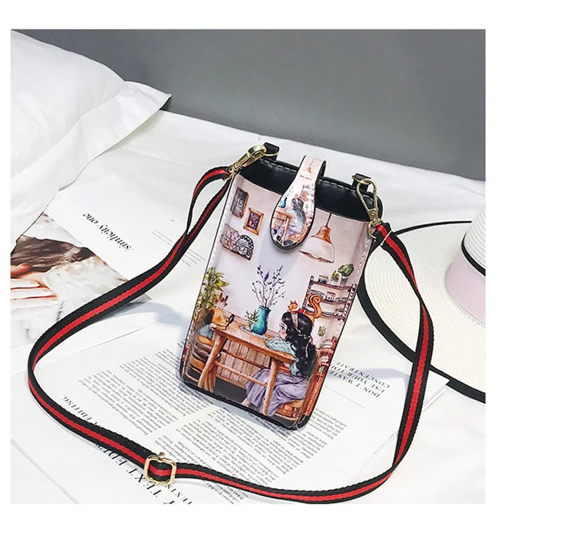 Новая модная дамская сумочка для сотового телефона, сумка на плечо из искусственной кожи в стиле ретро, милый мессенджер с принтом, маленькая квадратная сумка, наплечный Карманный Кошелек, Чехол