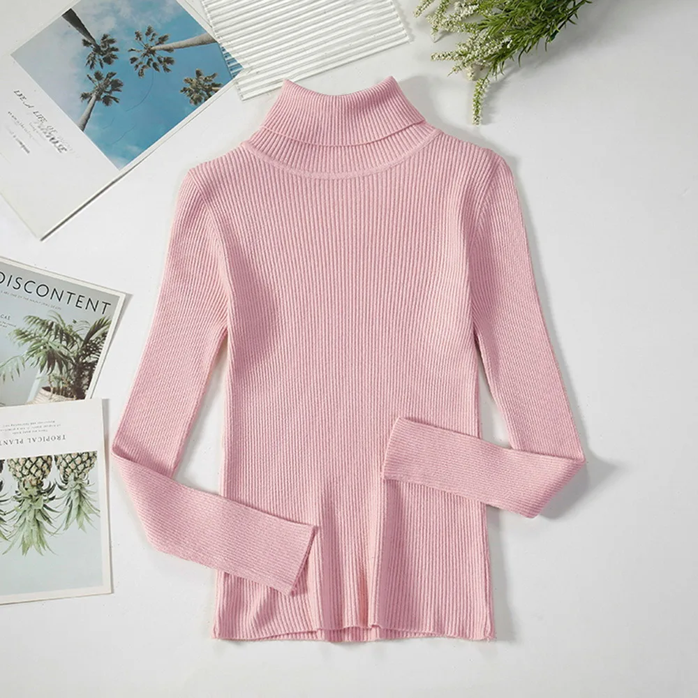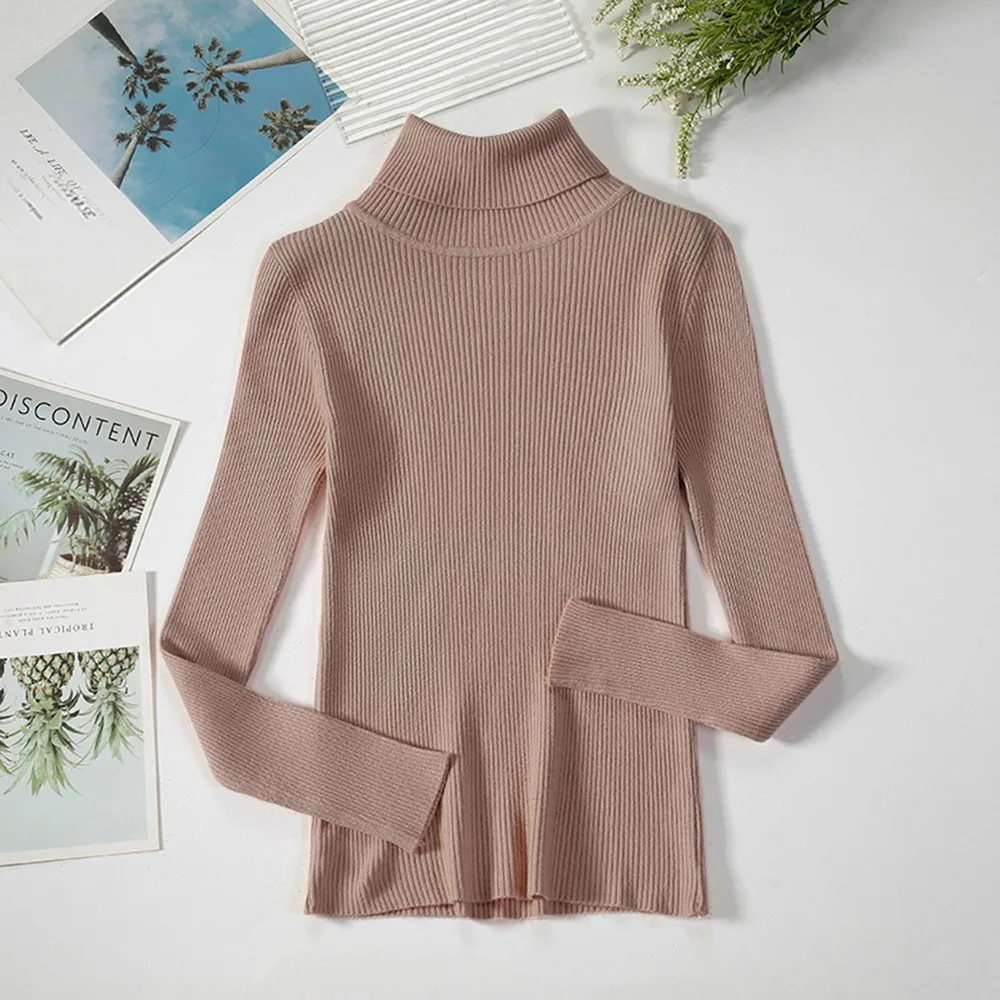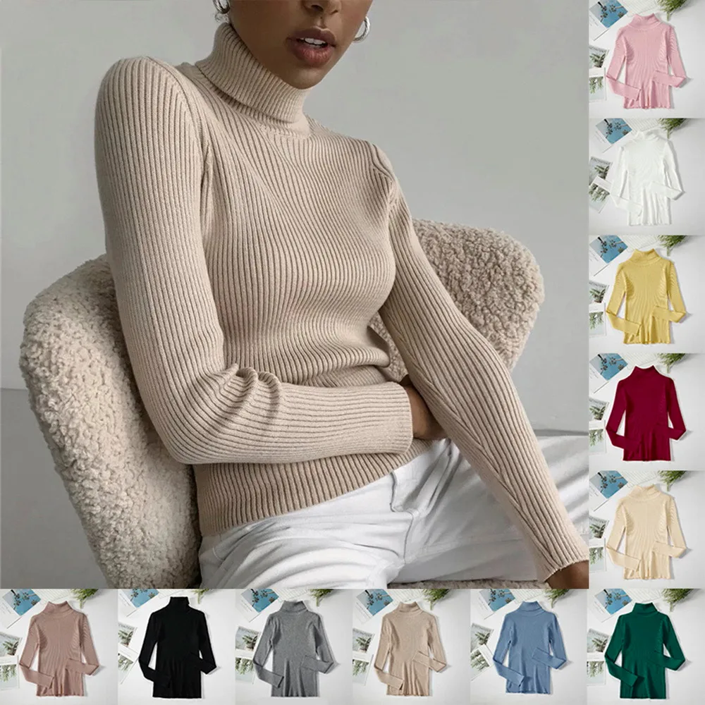 Женский свитер с длинным рукавом, плотный вязаный пуловер в рубчик, Облегающий мягкий теплый джемпер с высоким воротником, Осень-зима 2021