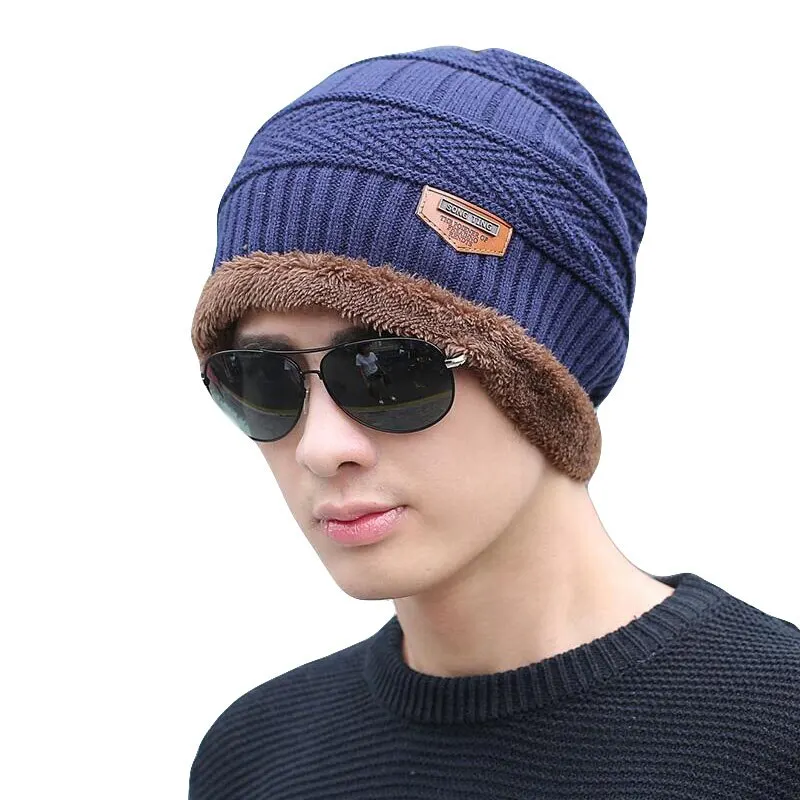 Зимняя Шапка-бини для мужчин, вязаная шапка зимняя шапочка-бини, же...