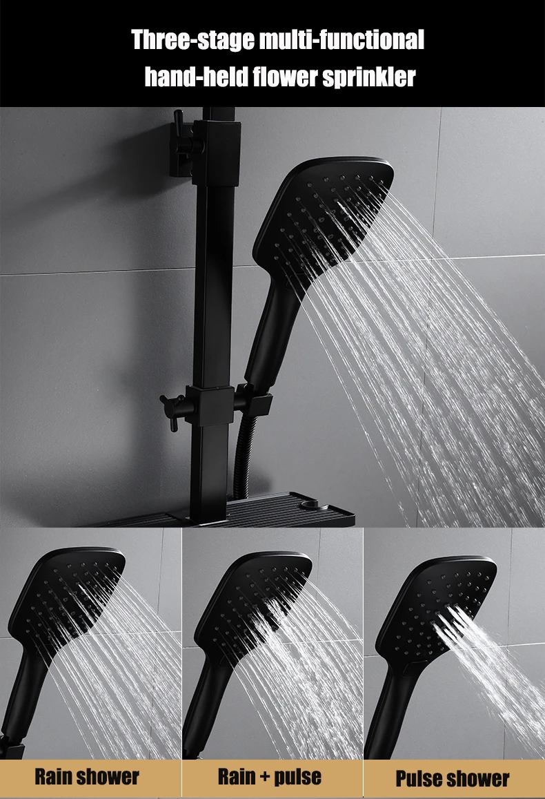 Черный душевой набор, настенный смеситель для душа, смеситель, 8 дюймов, 16 дюймов, душ для ванной комнаты, кран для душа с ручным вращением, носик для ванны