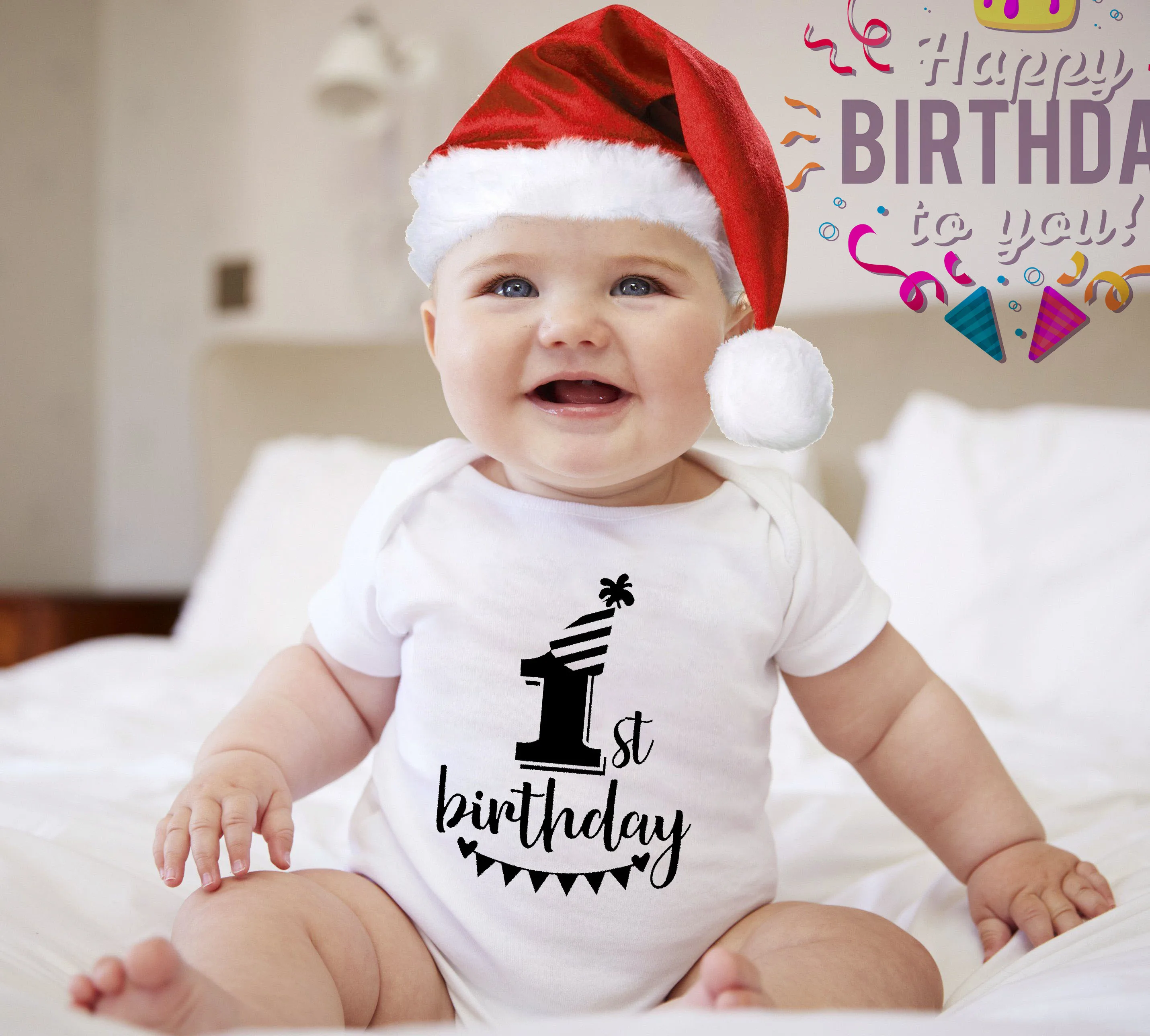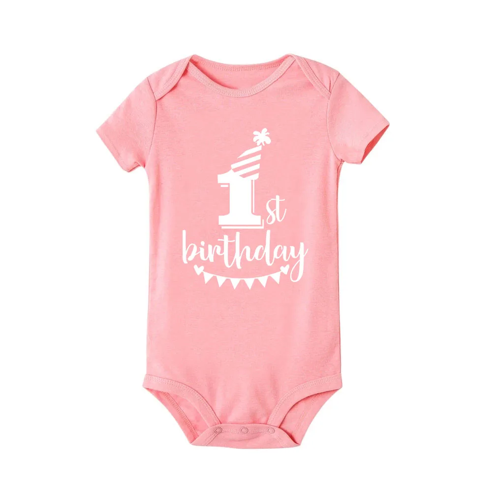 Комбинезон детский с коротким рукавом, с надписью My First Birthday...