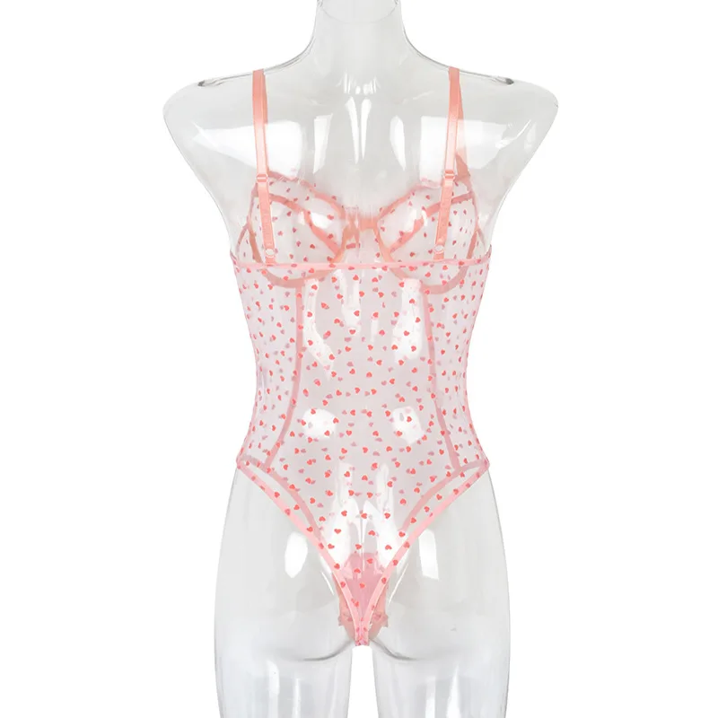 Сексуальное нижнее белье с сердечками, прозрачный кружевной чувстве...