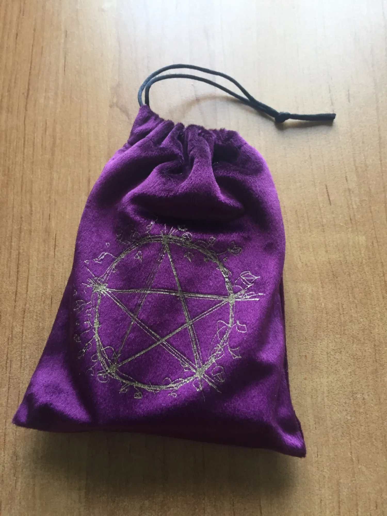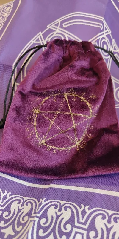 мешочек фиолетовый, а не бордовый и очень большой, подойдёт на оригинальные колоды или руны