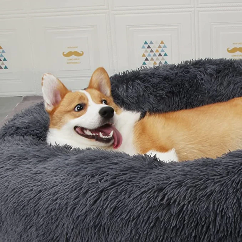 Супермягкая кровать для питомца, круглая теплая зимняя кровать для собаки и кошки, длинный плюшевый большой коврик для щенка, переносные принадлежности для кошек