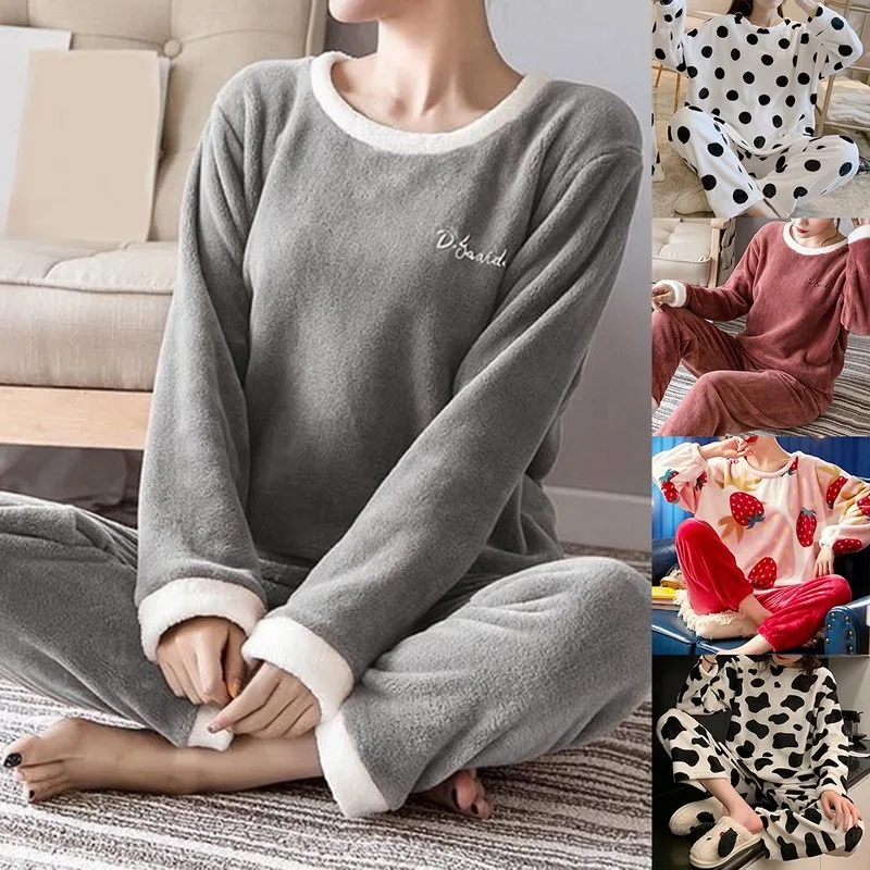 Женская пижама, зимняя фланелевая теплая одежда для сна с длинным рукавом, две пижамы из плотного кораллового флиса, Ночная одежда, Женский комплект, пижама для зимы
